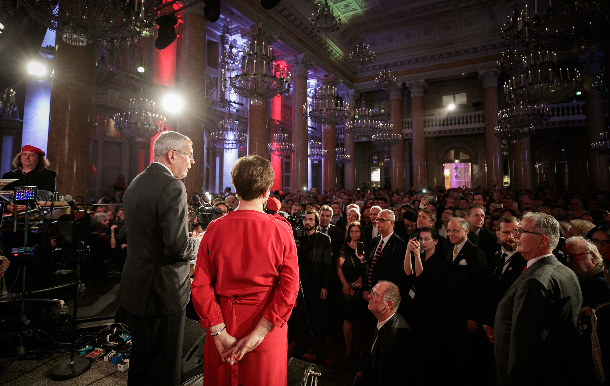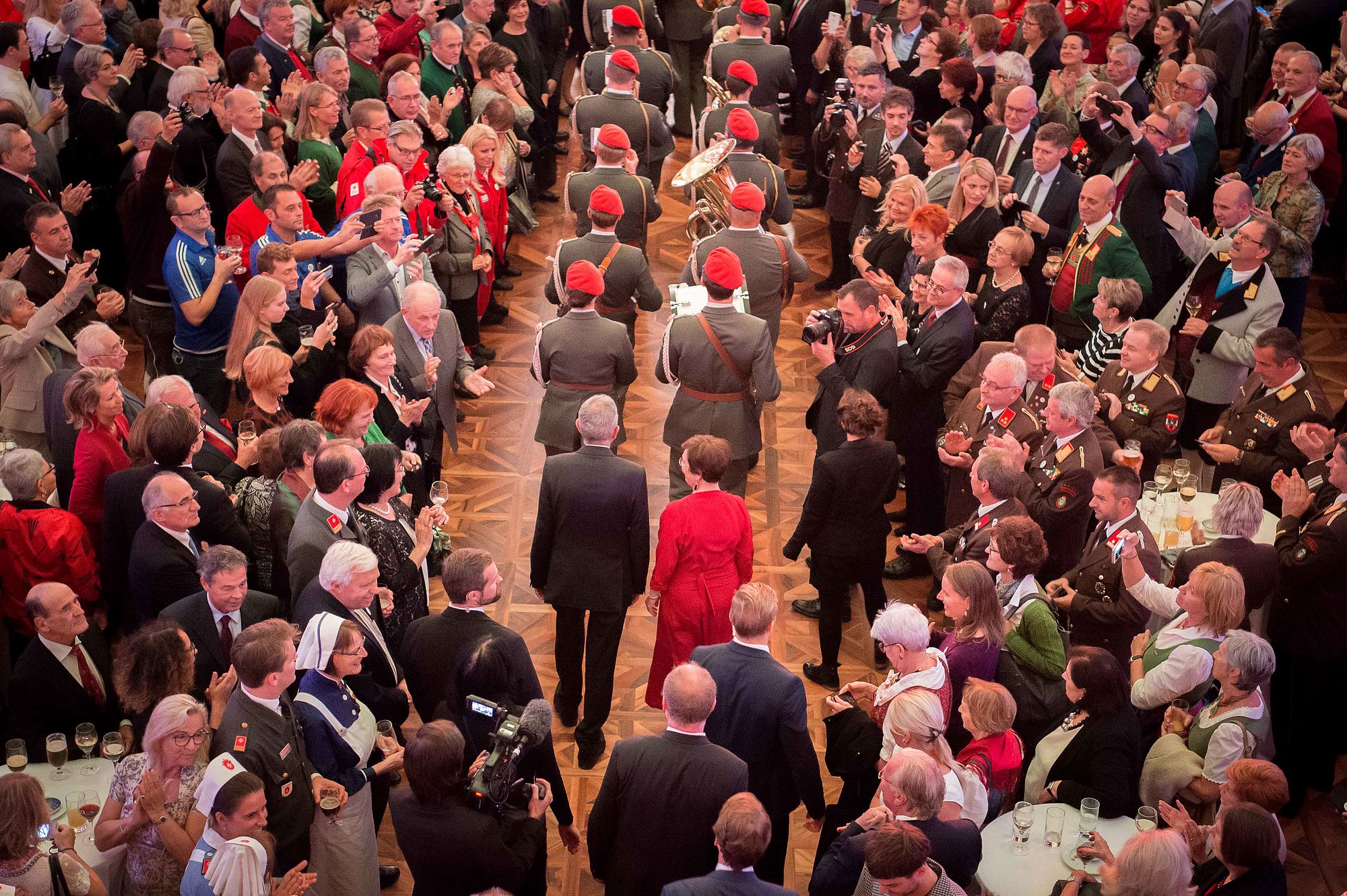 Bundespräsident Alexander Van der Bellen dankt in seiner Rede allen ehrenamtlich Tätigen. Das Fest am Abend des Nationalfeiertags in der Wiener Hofburg ist allen Heldinnen und Helden des Alltags gewidmet.