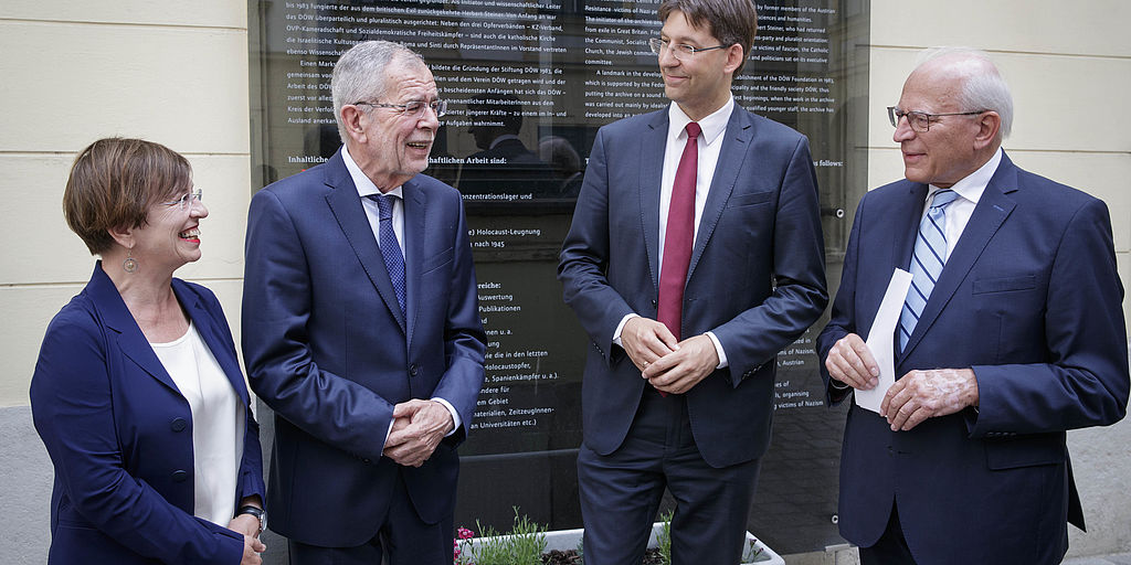 Alexander Van der Bellen würdigt das DÖW als »wichtige Säule im Kampf um historische, schonungslose Aufarbeitung unserer dunkelsten Geschichte«.