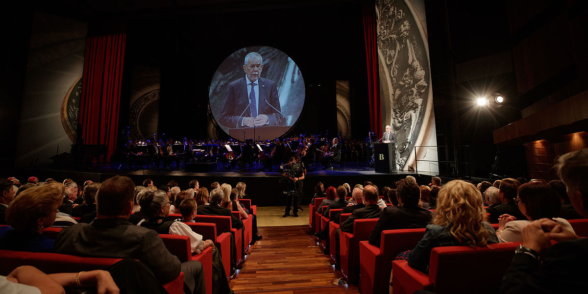 Festspielpräsident Hans-Peter Metzler stellte anschaulich dar, wie es den Bregenzer Festspielen gelingt, "nicht nur Ideen und Motivation zusammenzubringen, sondern: Menschen, viele Menschen. Hinter der Bühne, auf der Bühne, vor der Bühne", so Metzler. Die Bregenzer Festspiele seien ein "entscheidender Faktor für unser Land", wenn es darum gehe, zukunftsbildende und zukunftstragende Urbanität in positivster Weise ins Feld zu führen.