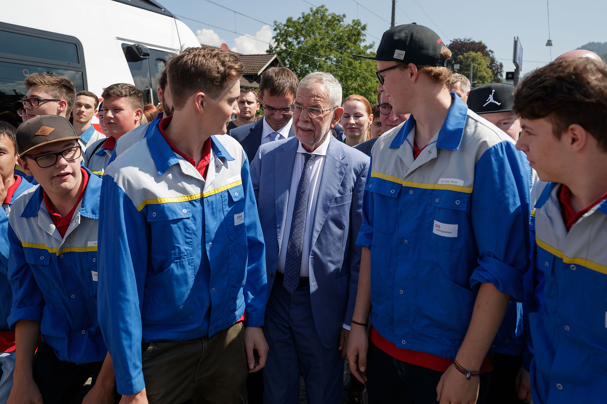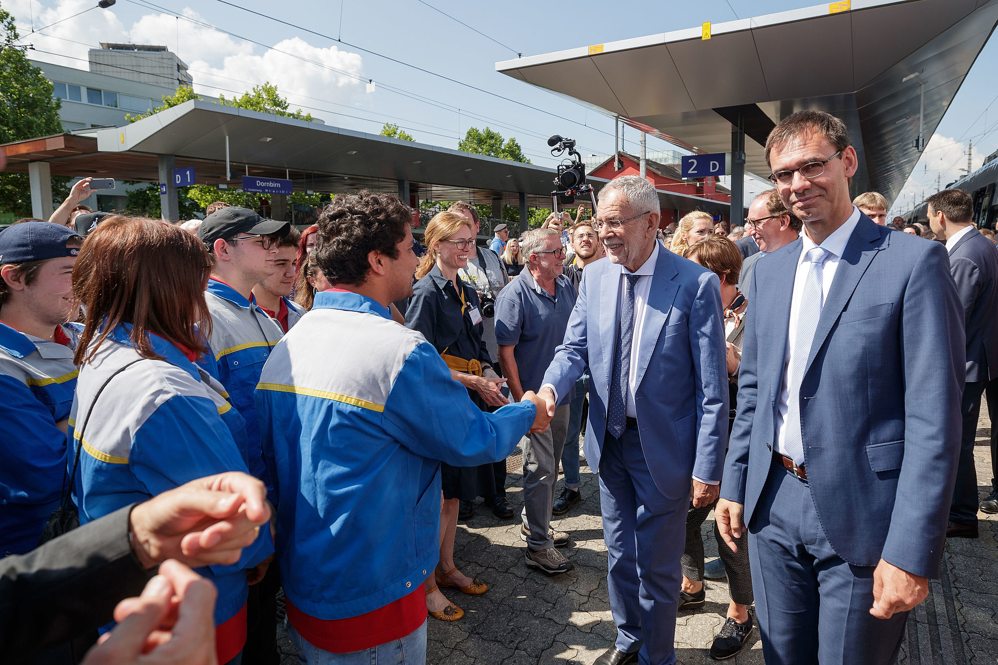 Zahlreiche Vorarlberger haben sich in Dornbirn im Rahmen eines "Bus-und-Bahn-Mobiltags" ein Bild von der nächsten Generation an Nah- und Regionalverkehrszügen gemacht. Der neue ÖBB Cityjet des Typs "Talent 3" wird voraussichtlich in den nächsten Monaten in Vorarlberg zum Einsatz kommen. Auch Bundespräsident Alexander Van der Bellen gehörte zu den Gästen.