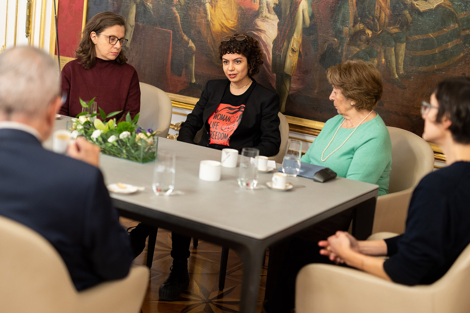 "Ich habe mich gerade mit Expertinnen zu einem Austausch über die aktuelle Situation im Iran getroffen. Wir sind uns am Platz der Menschenrechte begegnet, und ich möchte dazu grundsätzlich Stellung nehmen. Was im Iran seit dem gewaltsamen Tod von Mahsa Amini passiert, ist einfach schrecklich und muss uns alle äußerst besorgt machen. Wir dürfen nicht wegschauen. Ich verurteile jede Gewalt gegen Frauen. Egal wo auf der Welt, Frauen müssen selbstbestimmt leben dürfen und können. Die Gewalt setzt sich seit 8 Wochen gegen jene Bürgerinnen und Bürger des Iran fort, die von ihrem Grundrecht Gebrauch gemacht haben, sich zu versammeln und zu protestieren. Ich bewundere den Mut der Menschen im Iran, die getragen von der Hoffnung auf der Straße sind und sich für Frauenrechte, Menschenrechte, Freiheit und Demokratie einsetzen."