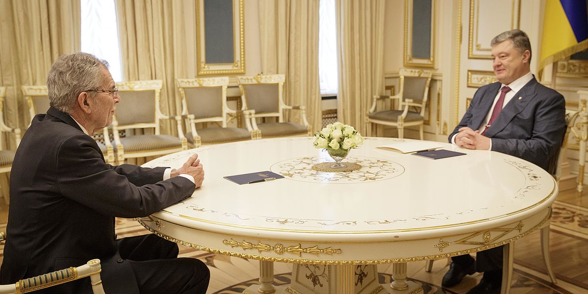 Der Bundespräsident strich am Vorabend des Treffens mit Poroschenko die engen Beziehungen zwischen Österreich und der Ukraine hervor, nicht nur politisch, aber auch wirtschaftlich und im wissenschaftlichen Bereich. Österreich zähle zu den größten Auslandsinvestoren in der Ukraine und sei auch ein wichtiger Wirtschaftsfaktor. "Österreichische Firmen beschäftigen rund 30.000 Personen in der Ukraine", betonte er. Außerdem sei Österreich einer der ersten Staaten gewesen, der die Ukraine nach der Unabhängigkeit im Jahr 1991 anerkannt habe.
