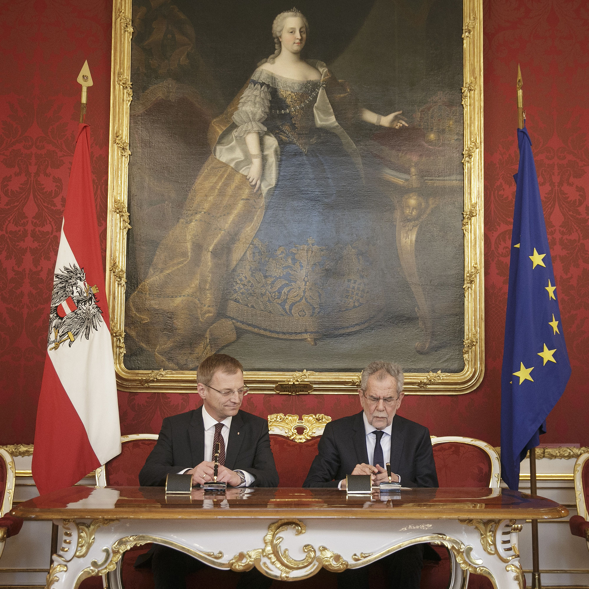 Angelobung von Thomas Stelzer zum Landeshauptmann von Oberösterreich im Beisein von Bundeskanzler Christian Kern und Vizekanzler Reinhold Mitterlehner.