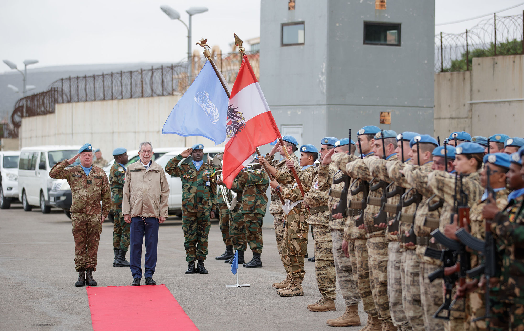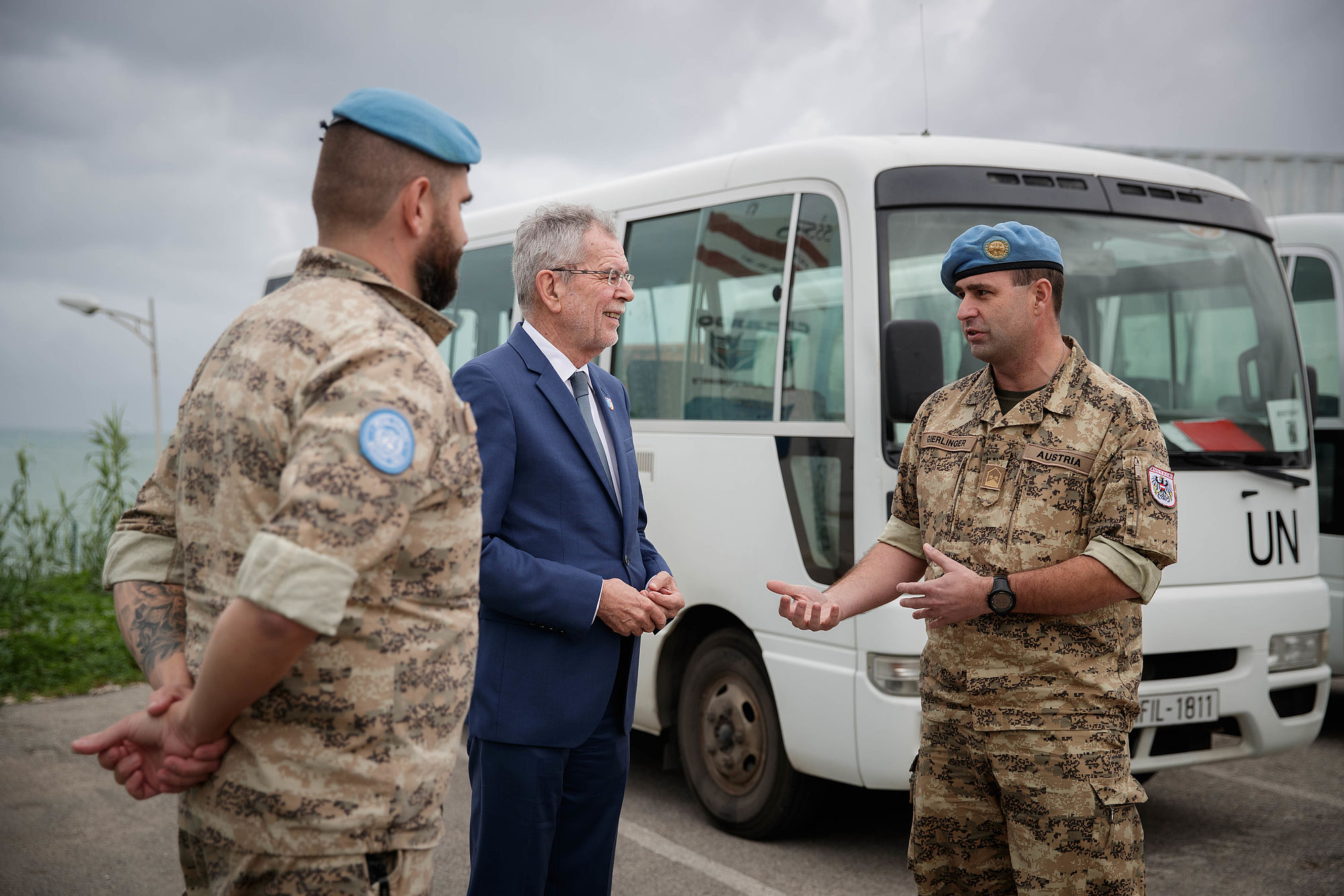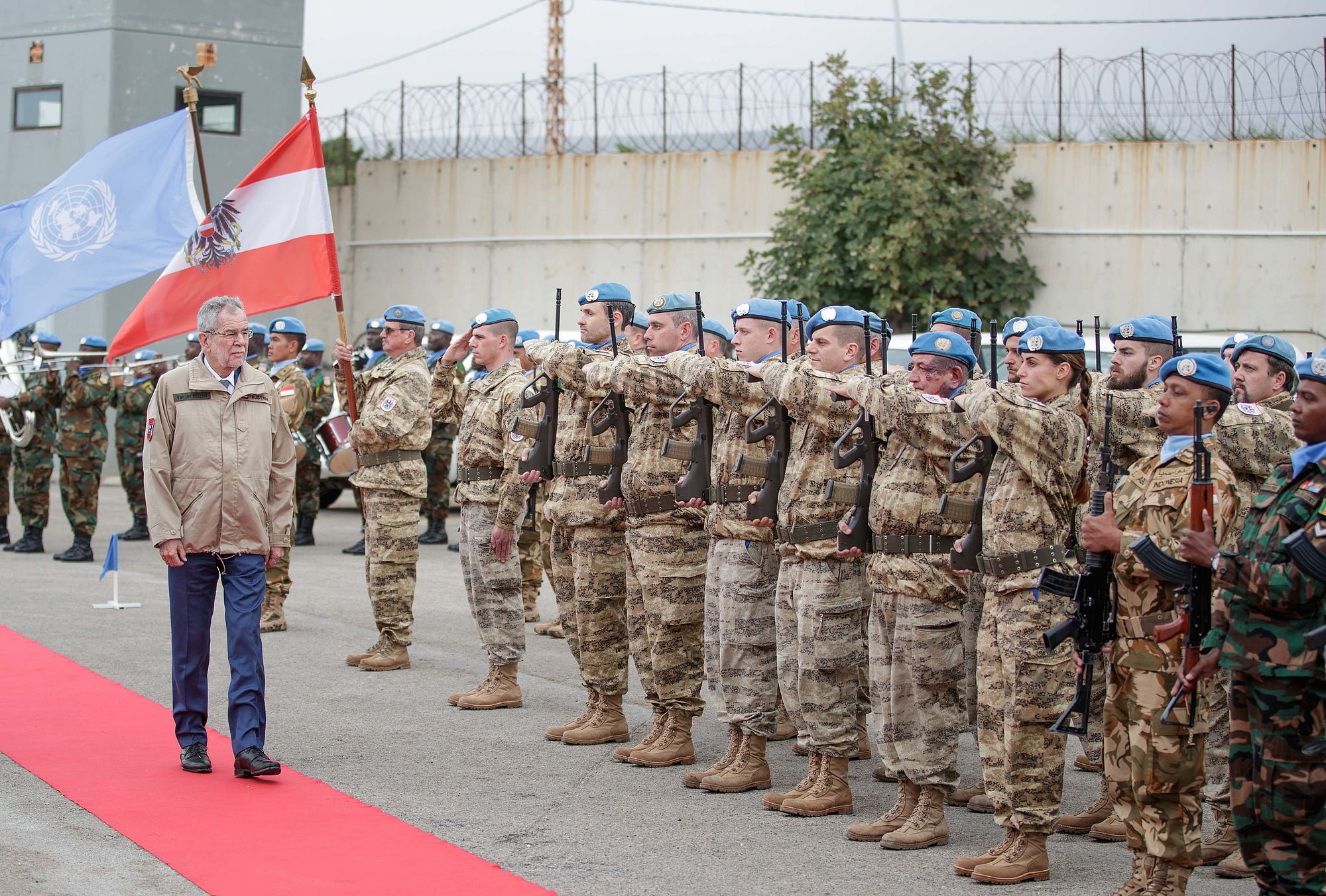 Zum Abschluss der dreitägigen Libanon-Reise besucht Bundespräsident Alexander Van der Bellen im Süden des Libanons an der Grenze zu Israel die UNIFIL-Friedenstruppe im Camp Naqoura. Österreich beteiltigt sich mit rund 180 Soldatinnen und Soldaten des Österreichischen Bundesheeres an der Mission und leistet damit einen wesentlichen Beitrag zur Sicherung der Logistik.