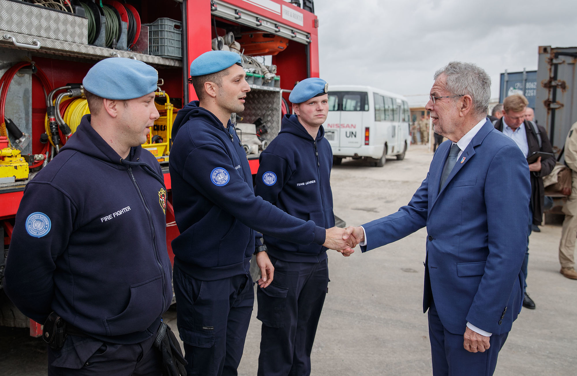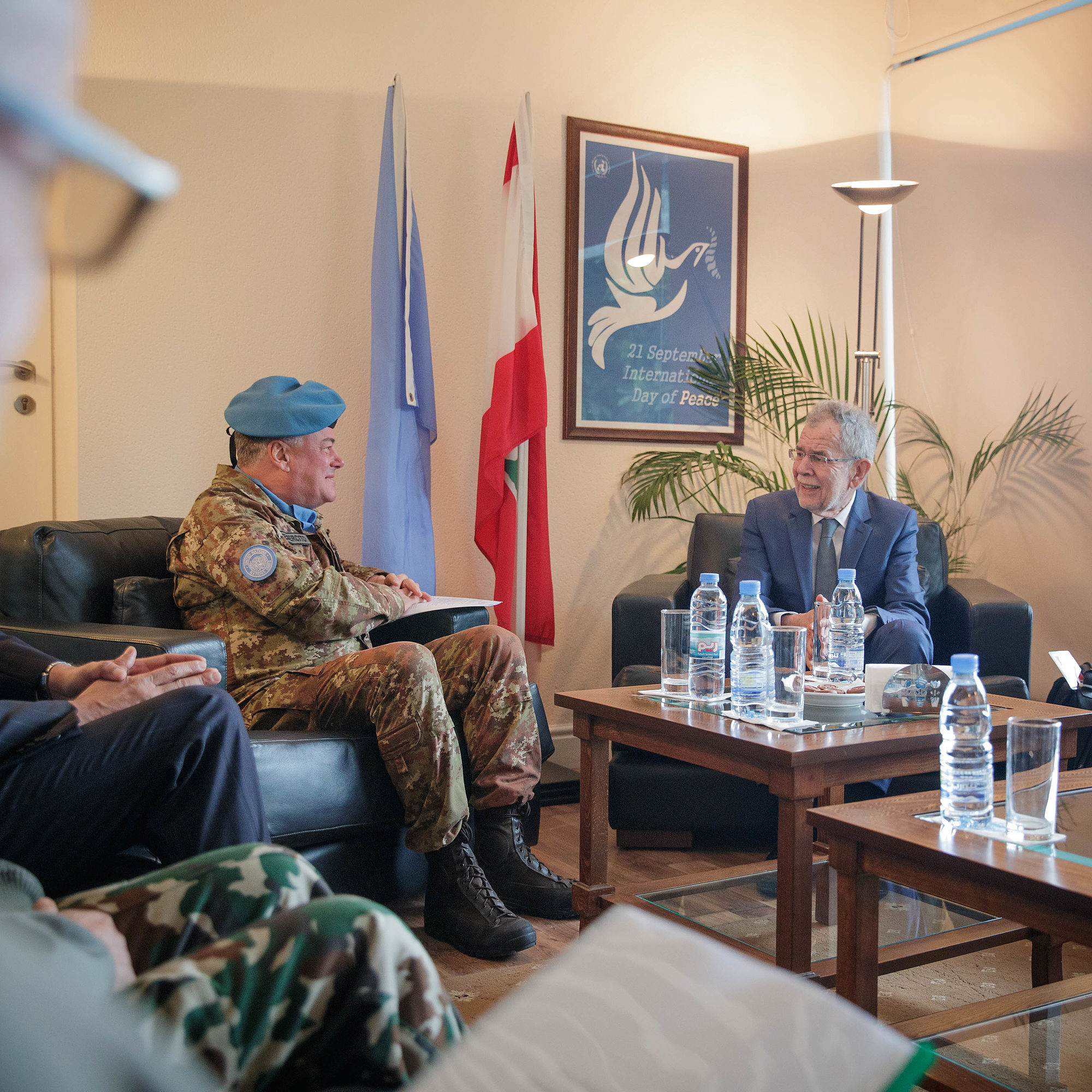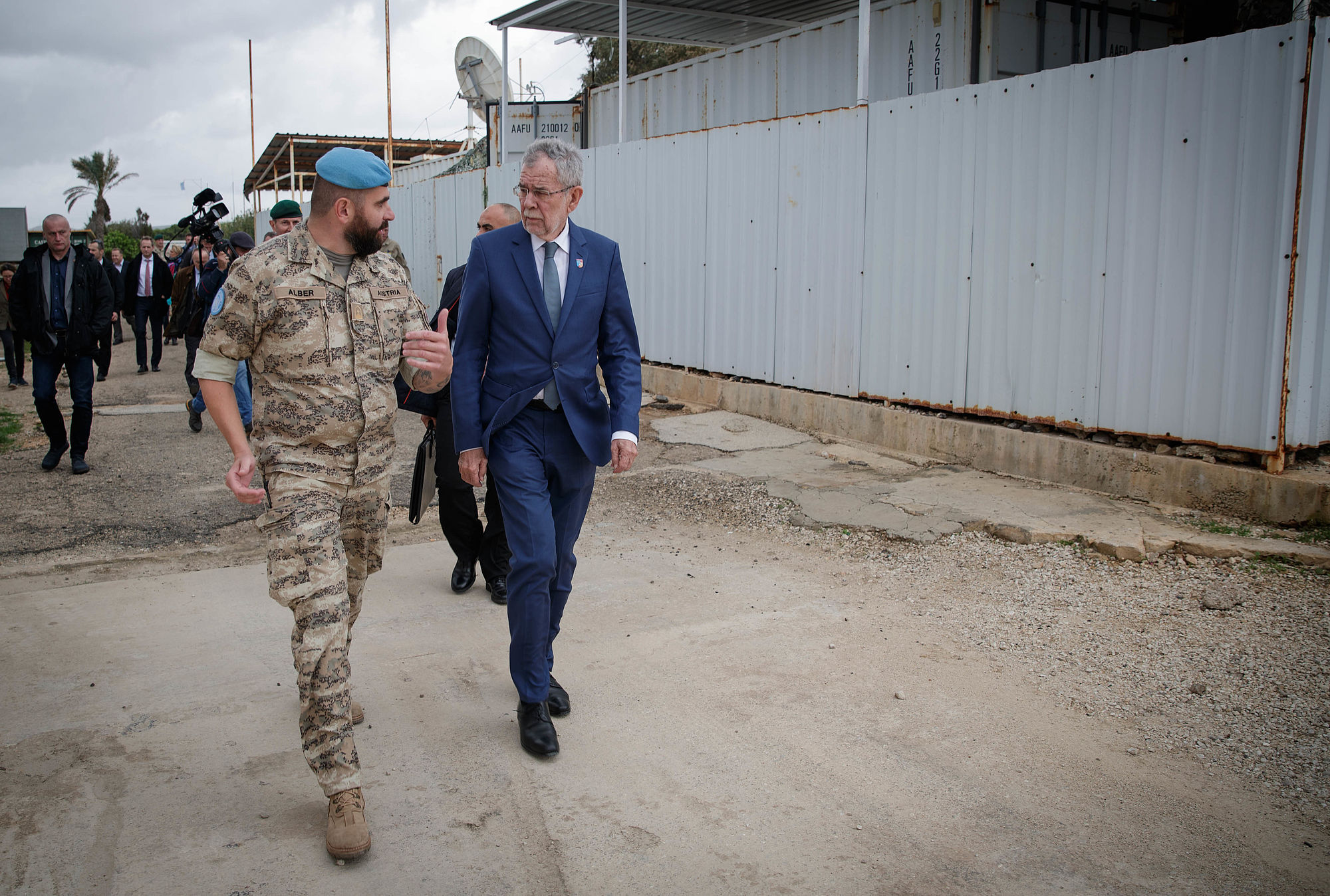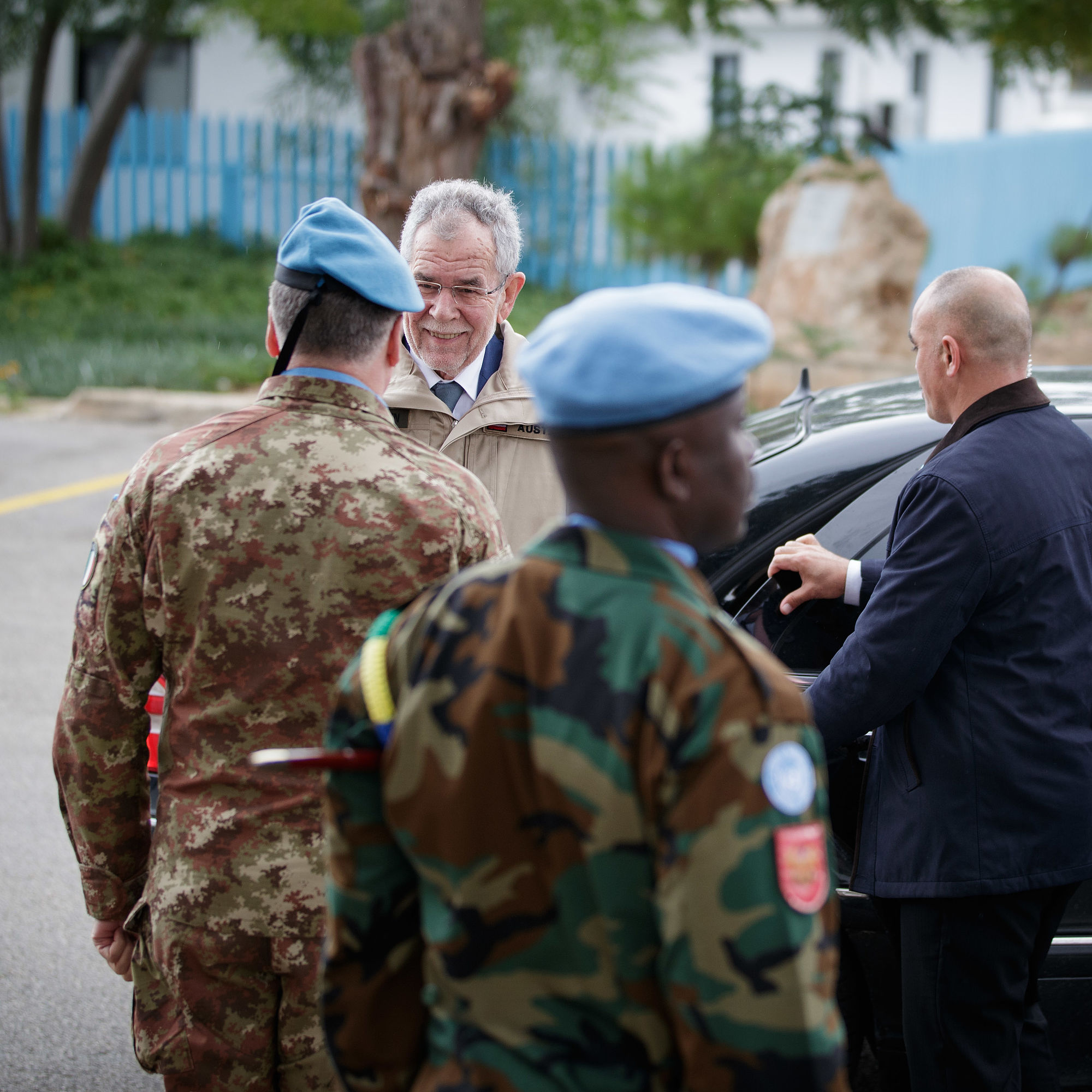 Zum Abschluss der dreitägigen Libanon-Reise besucht Bundespräsident Alexander Van der Bellen im Süden des Libanons an der Grenze zu Israel die UNIFIL-Friedenstruppe im Camp Naqoura. Österreich beteiltigt sich mit rund 180 Soldatinnen und Soldaten des Österreichischen Bundesheeres an der Mission und leistet damit einen wesentlichen Beitrag zur Sicherung der Logistik.