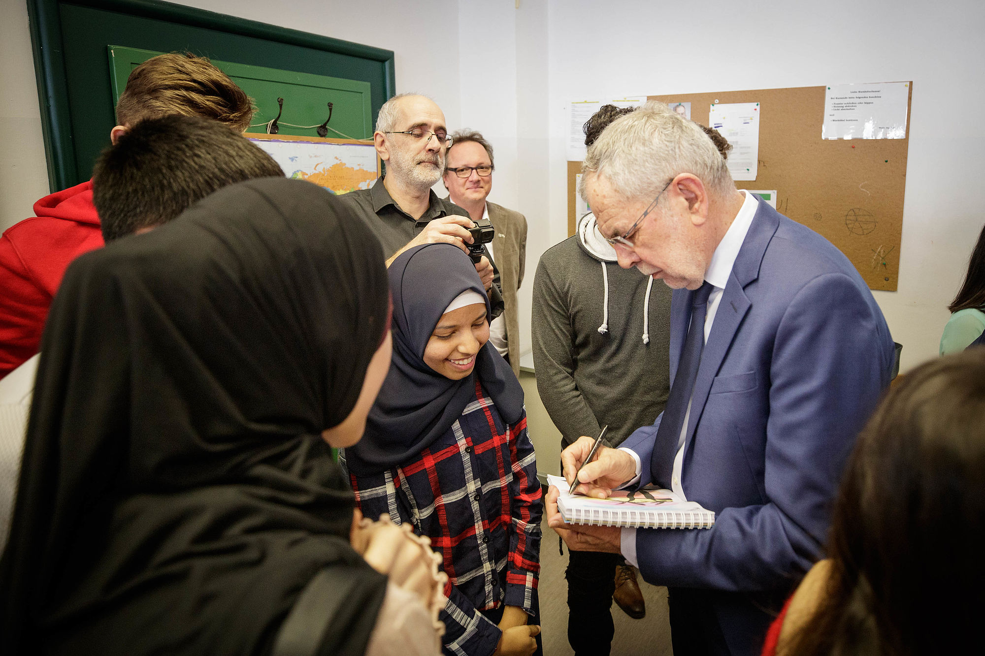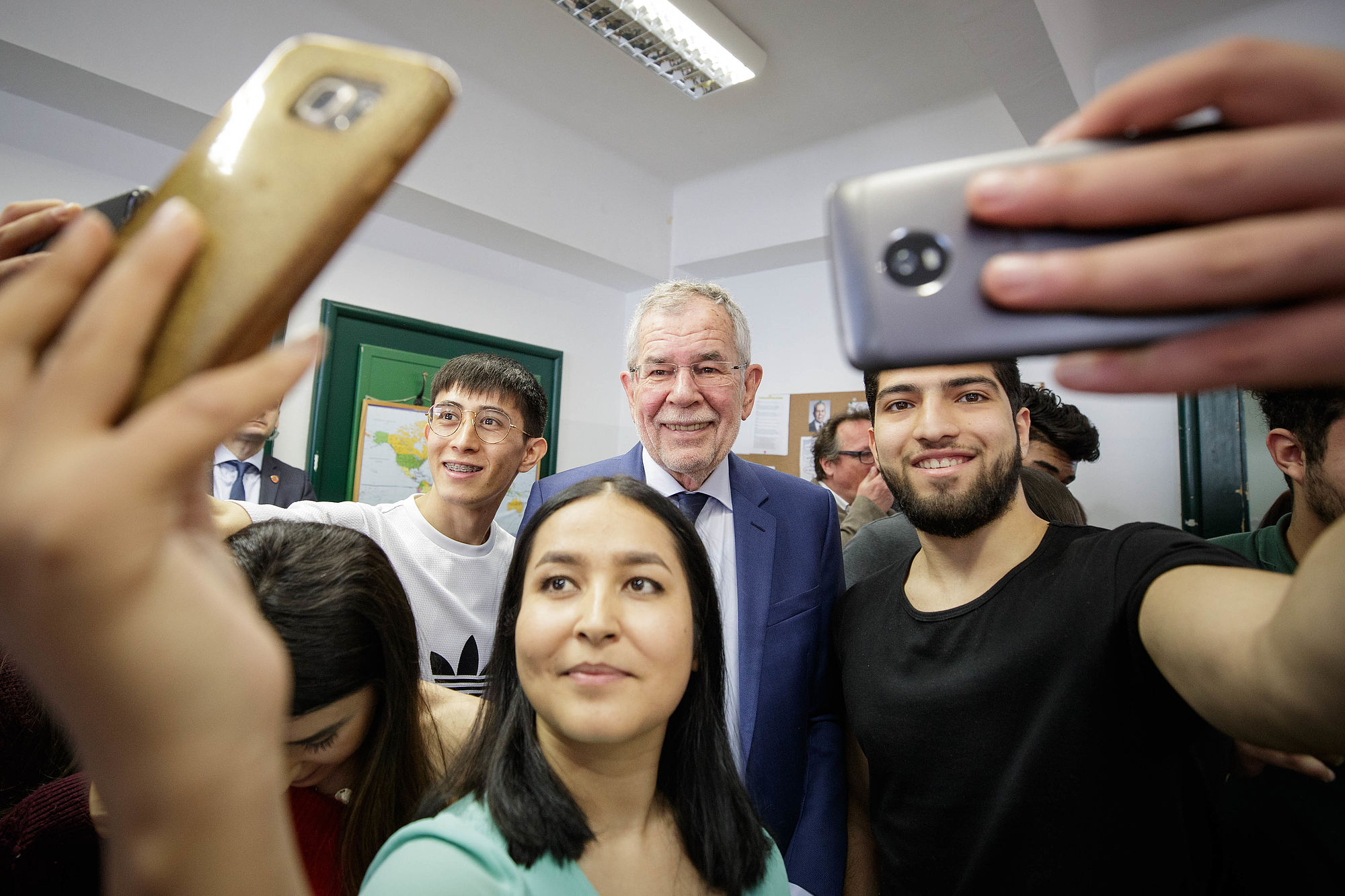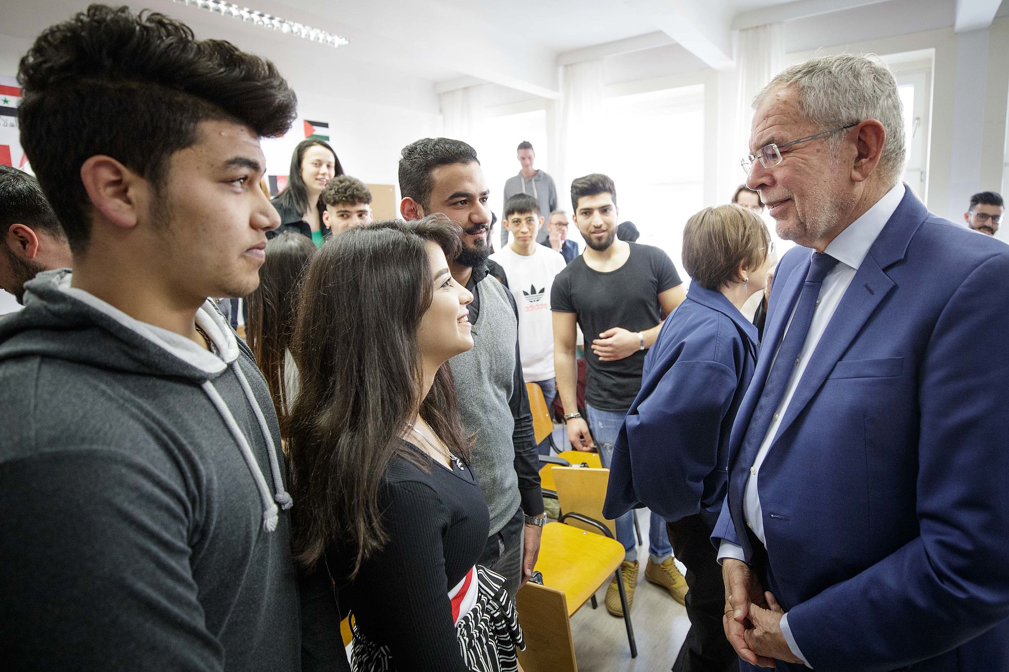 Bei einem Treffen mit jugendlichen Flüchtlingen im Wiener Integrationshaus erinnerte Alexander Van der Bellen daran, dass auch er selbst als Sohn estnischer Zuwanderer in Tirol aufwuchs und erst mit 15 Jahren österreichischer Staatsbürger wurde. Den Jugendlichen, die eine Lehre aufnehmen wollen, riet der Bundespräsident, neben Deutsch und Englisch auch die eigene Muttersprache zu lernen. "Versuchen Sie, dreisprachig zu sein", gab Alexander Van der Bellen ihnen mit auf den Weg. Denn er bedaure es bis heute, von seinen Eltern kein Russisch gelernt zu haben.