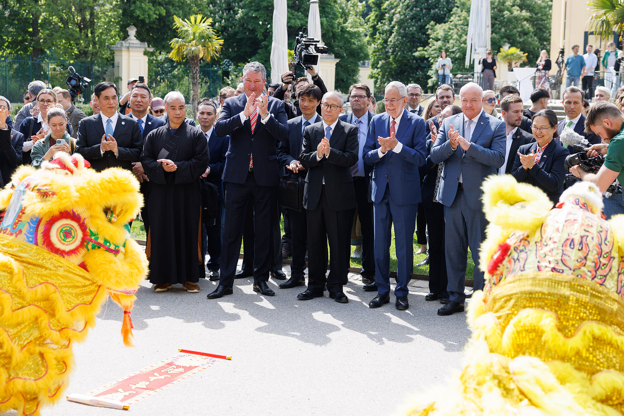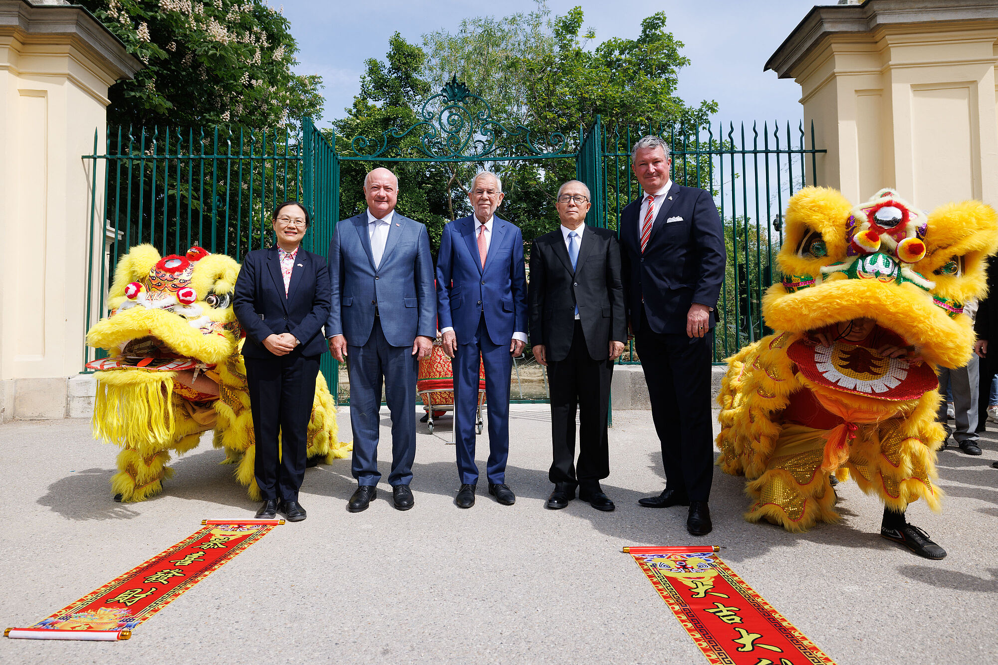 Der Tiergarten Schönbrunn hat "Lan Yun" und "He Feng" mit einem Löwentanz und Vertreterinnen und Vertretern aus der Politik offiziell willkommen geheißen. Bundespräsident Alexander Van der Bellen, Bundeskanzler Christian Stocker und der Vizepräsident des Nationalen Volkskongresses Chinas, Li Hongzhong, waren bei der Zeremonie im Kaiserpavillon dabei. Besucherinnen und Besucher können die Großen Pandas nun auch in der neu gestalteten Anlage sehen.