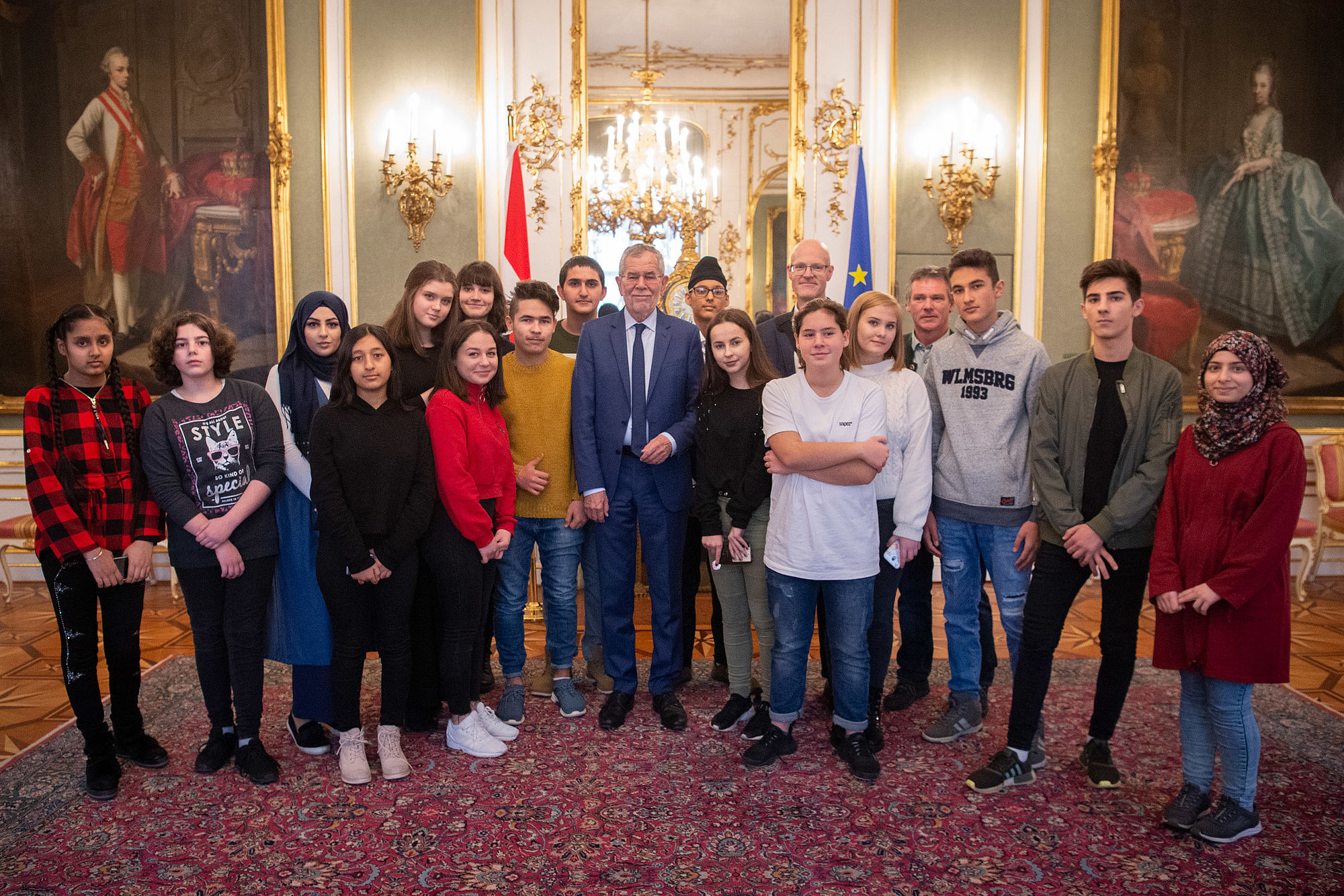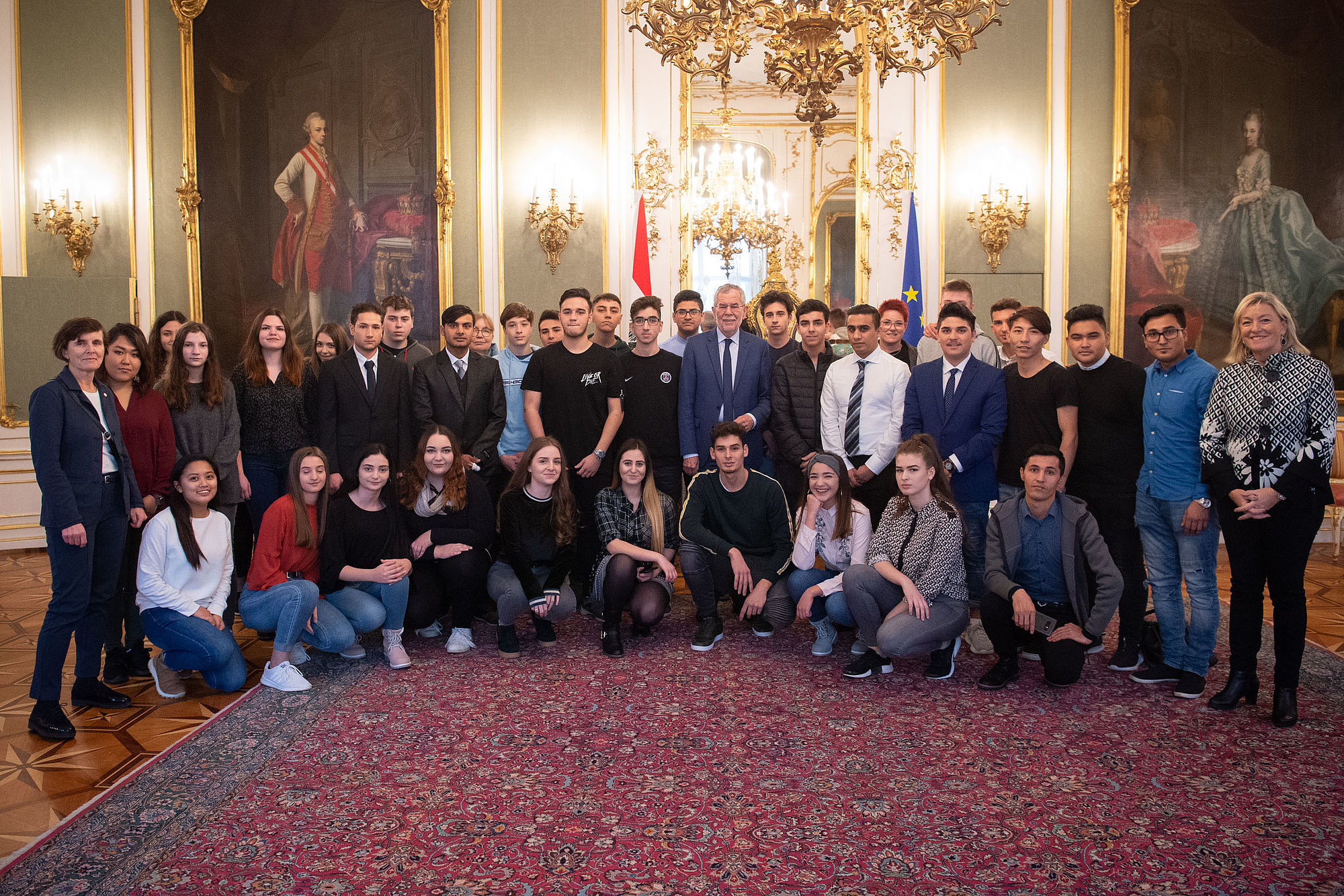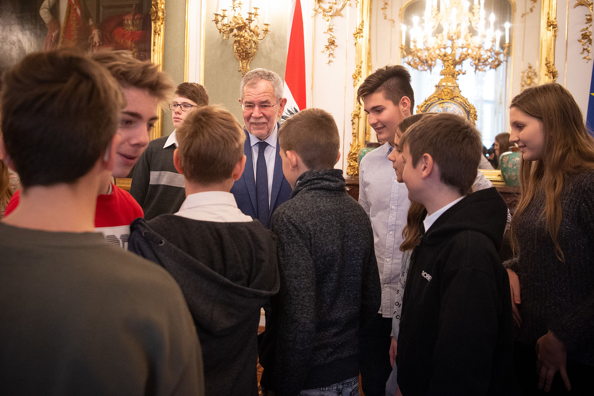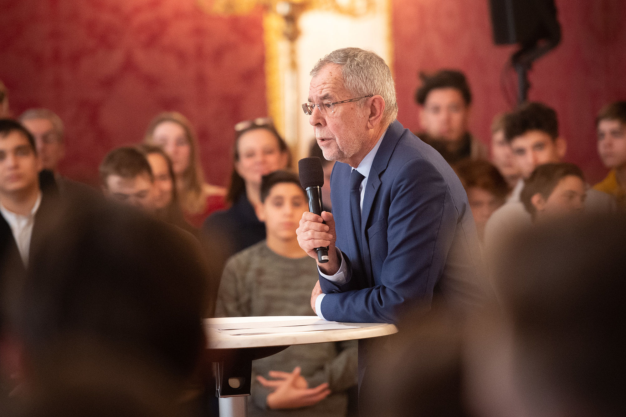 Bundespräsident Alexander Van der Bellen trifft Schülerinnen und Schüler aus Österreich für eine Diskussion zu aktuellen politischen Themen.