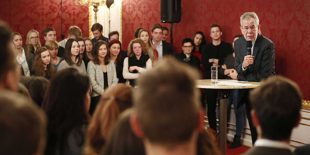 Alexander Van der Bellen trifft zum 3. Mal Schülerinnen und Schüler aus den Bundesländern in seinen Amtsräumen in der Wiener Hofburg zu einer Diskussion über aktuelle Themen.