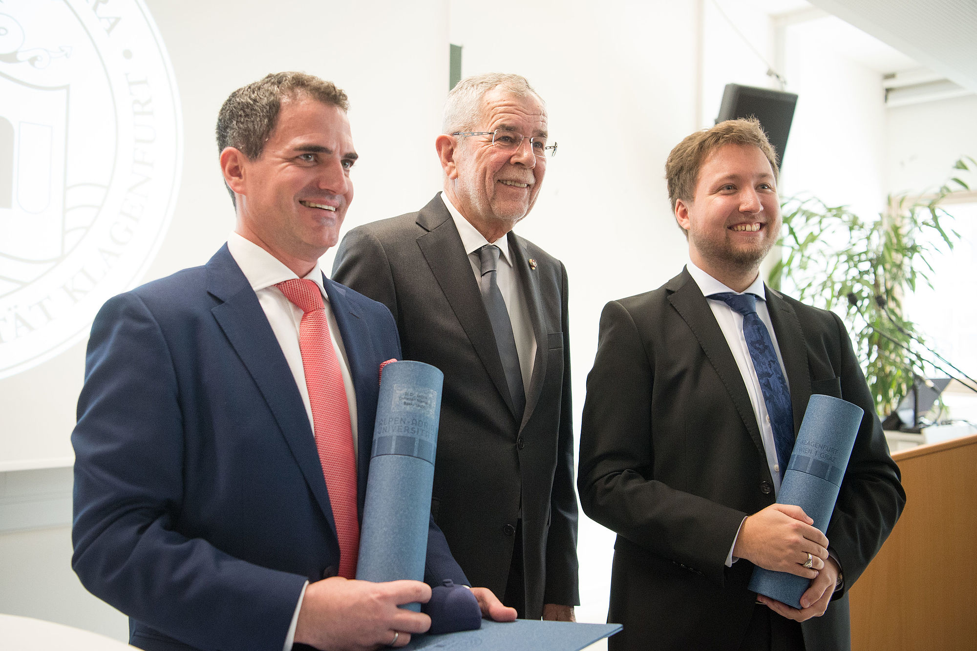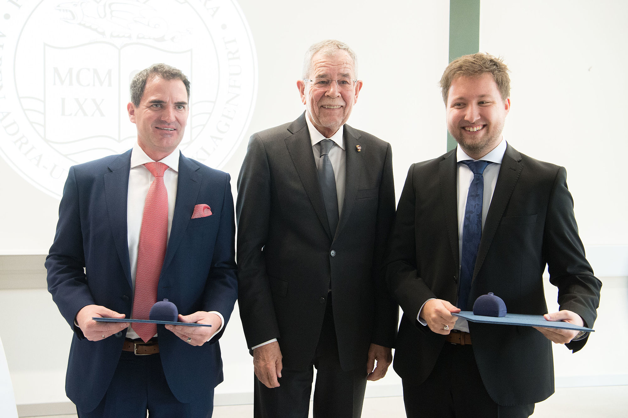 Bundespräsident Alexander Van der Bellen verlieh Ehrenringe an Benjamin Hackl und Christian Niemetz - Sub auspiciis-Promotionen für zwei Mathematiker in Klagenfurt
