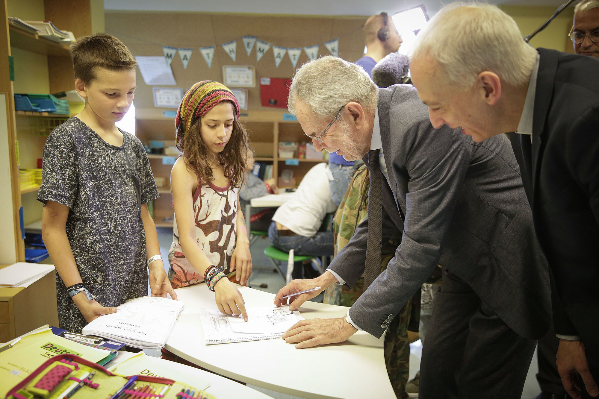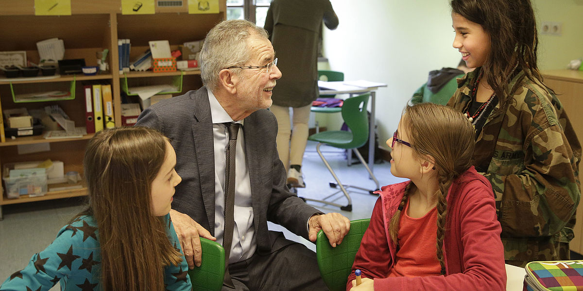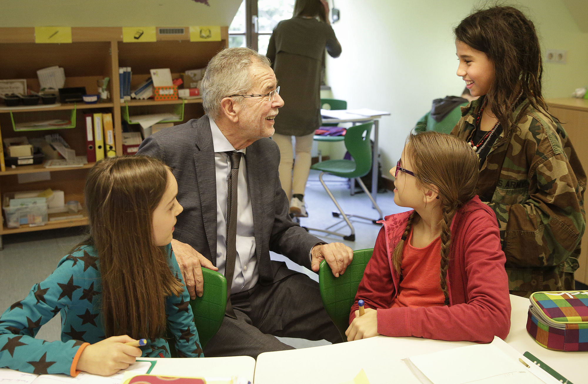 Abseits der derzeitigen Turbulenzen hat sich Bundespräsident Alexander Van der Bellen am Freitagvormittag rund eineinhalb Stunden Zeit für einen Termin abseits des tagespolitischen Geschäfts genommen. Er besuchte eine Wiener Schule, in der Kinder mit und ohne Behinderung gemeinsam betreut werden.