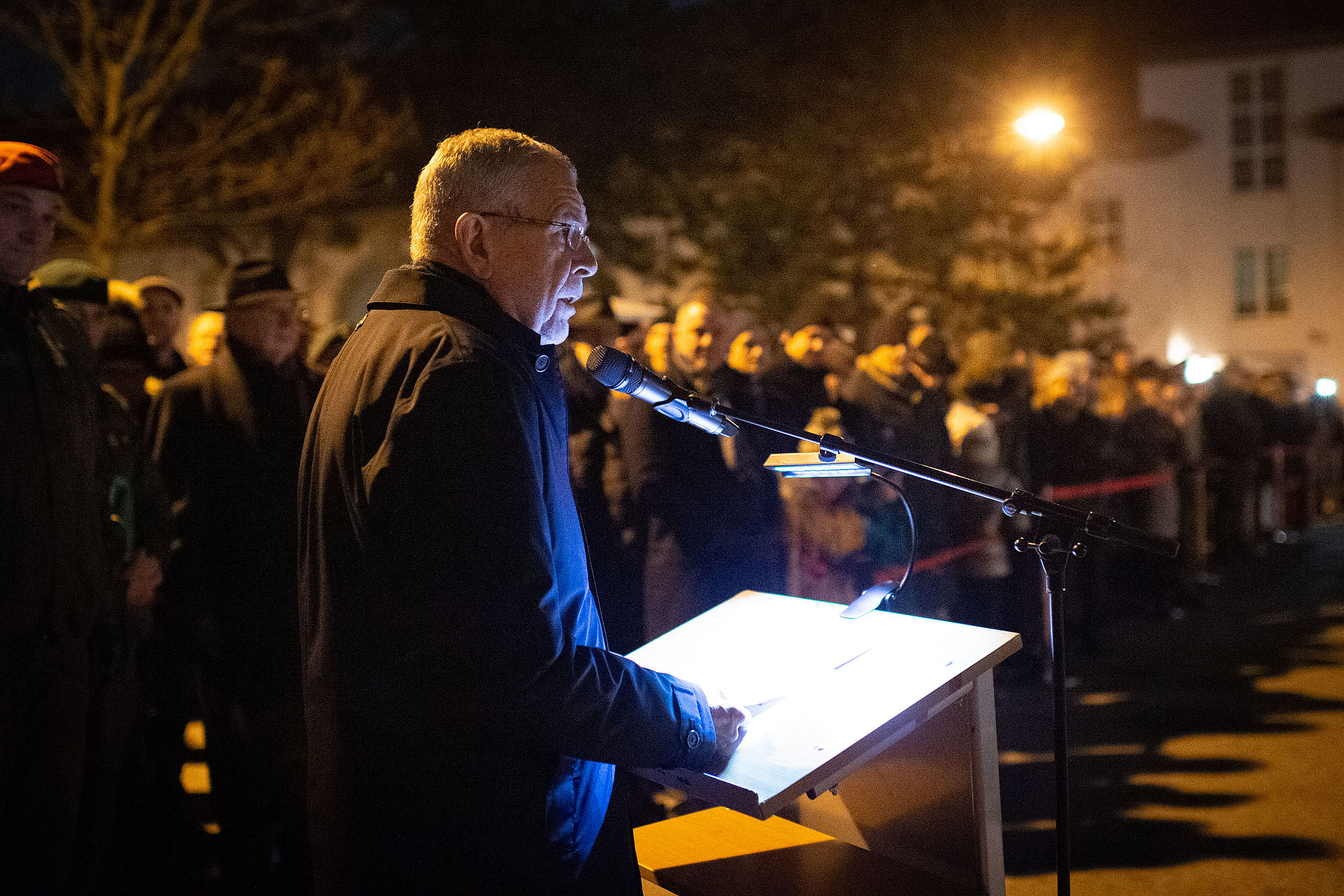 Bundespräsident Alexander Van der Bellen nimmt an der traditionellen Weihnachtsfeier der Garde teil, um sich bei den Soldatinnen und Soldaten für ihre beeindruckenden Leistungen wie Repräsentationsaufgaben, Garde-Musik zu Benefizzwecken oder die jährliche Arbeit am Spendentelefon für Licht ins Dunkel im Namen der Republik Österreich zu danken.