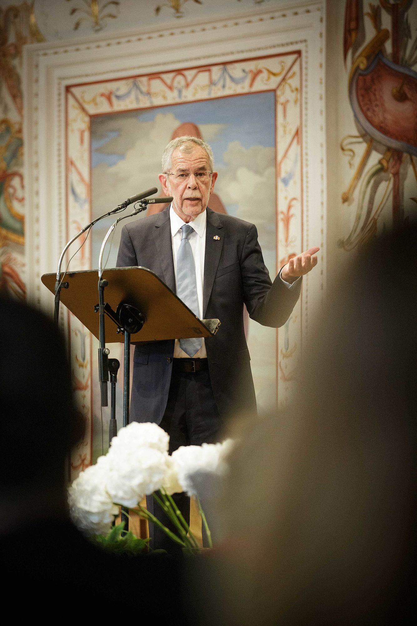 Bundespräsident Alexander Van der Bellen nahm Anleihe bei dem Motto "Bewegte Welten" und erzählte aus dem Jahr 1968, dem Jahr der Studentenunruhen und gleichzeitig seinem ersten Jahr als Assistent an der Universität Innsbruck. "Im Nachhinein erscheinen die Dinge oft übersichtlich und verständlich, während sie, wenn man selbst mitten drinnen ist, turbulent und chaotisch erscheinen", sagte Alexander Van der Bellen. Trotzdem müsse man Entscheidungen treffen, oft unter unvollständiger Information. "Das ändert aber nichts daran, dass wir Entscheidungen treffen müssen", so der Bundespräsident. Am Ende bleibe aber immer noch die Kunst. "Wenn alles andere schief geht, das bleibt, und das ist ein Trost für uns Politiker", sagte Alexander Van der Bellen.