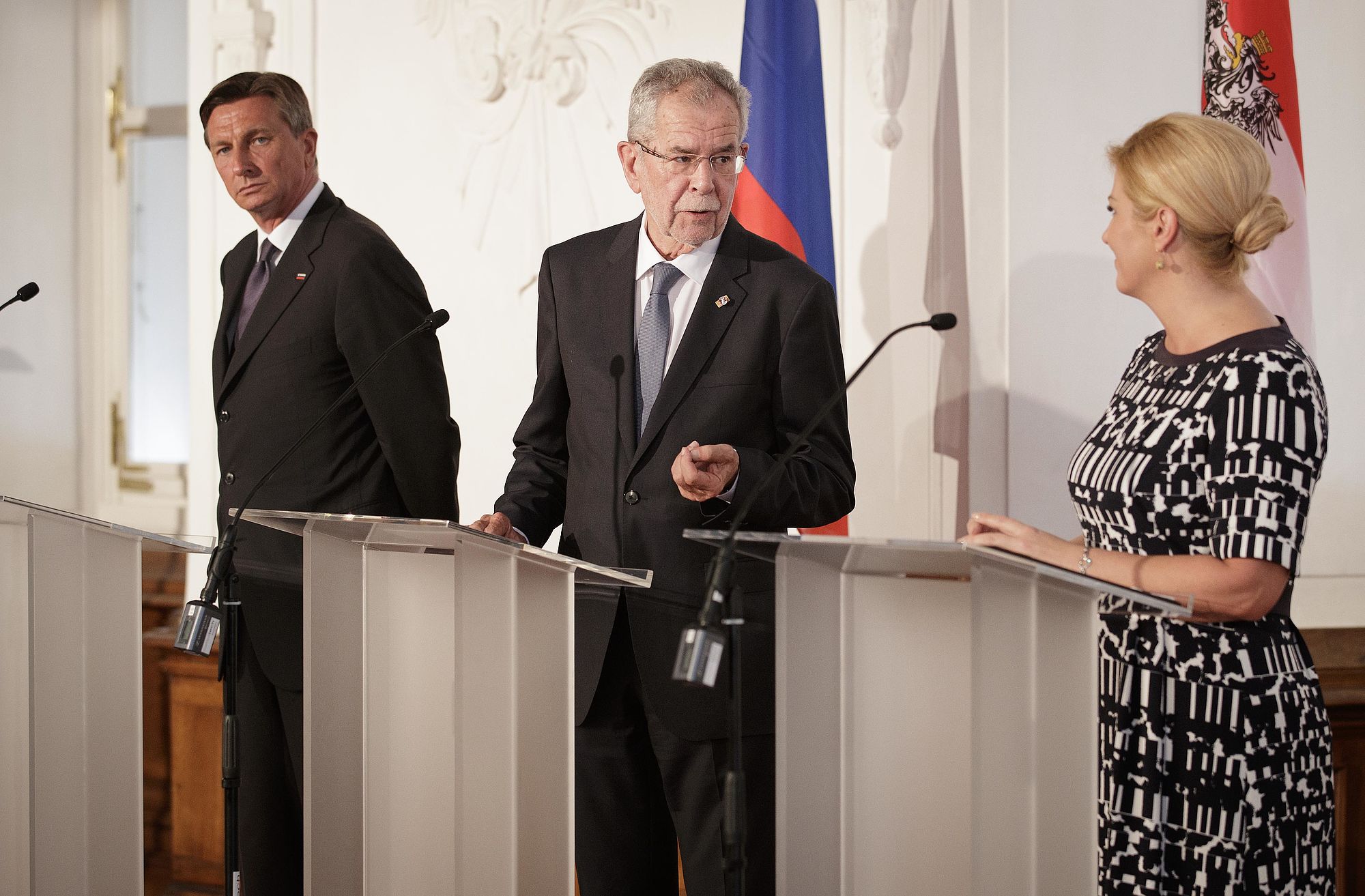 Alexander Van der Bellen empfängt erstmals seinen slowenischen Amtskollegen Borut Pahor und die kroatische Präsidentin Kolinda Grabar-Kitarovic in Salzburg zum jährlichen Arbeitstreffen.