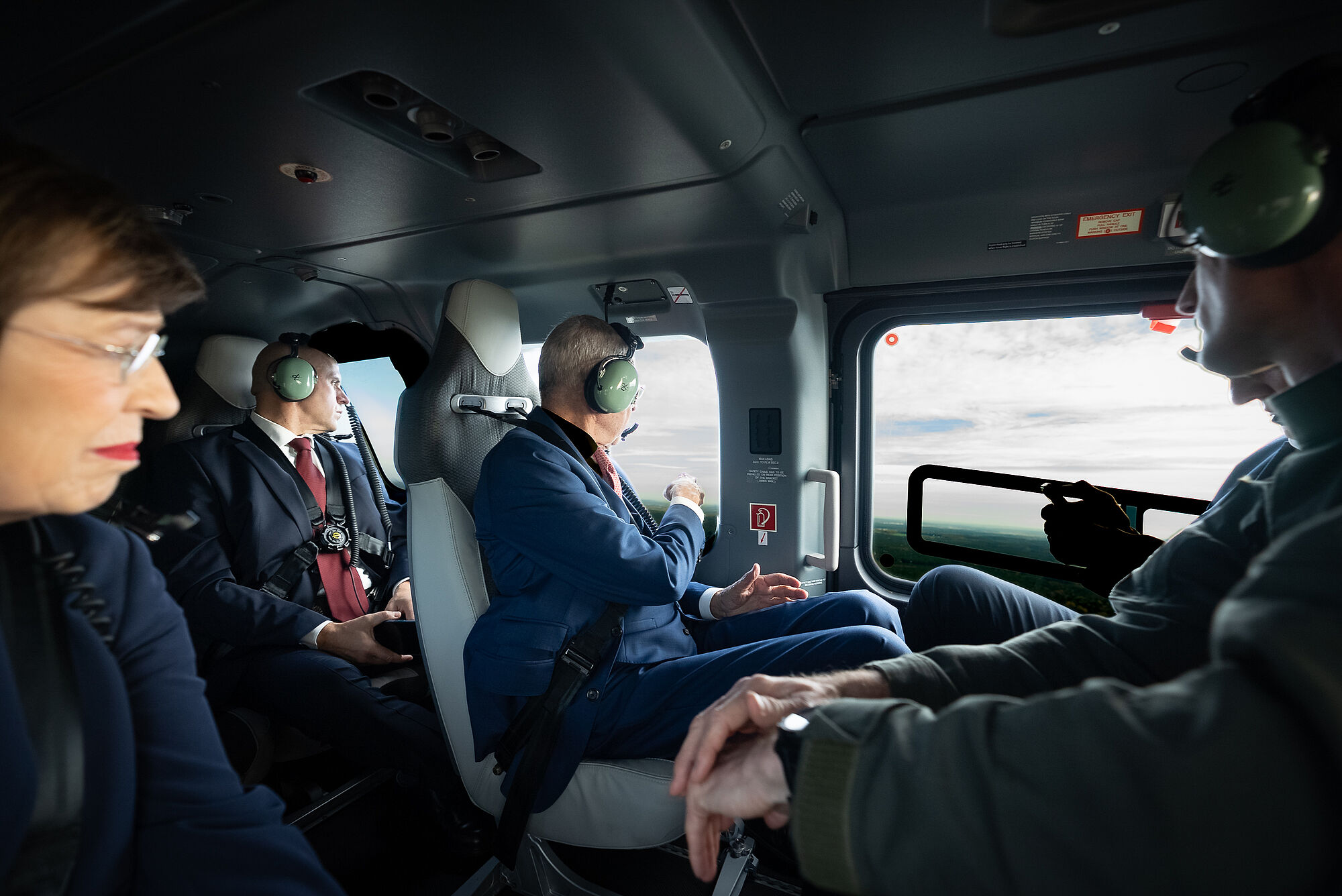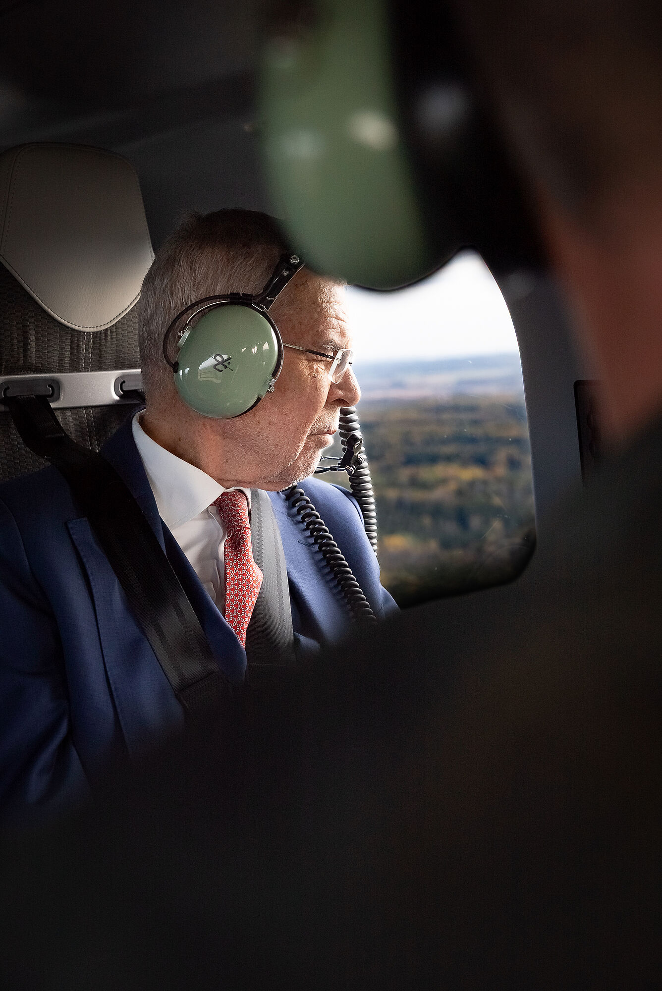 Vor Ort erhielt der Bundespräsident ein Briefing zu aktuellen Herausforderungen an der EU-Außengrenze und besichtigte das dortige Überwachungszentrum. Mittels Helikopter überflog der Bundespräsident schließlich das Grenzgebiet zu Belarus.
