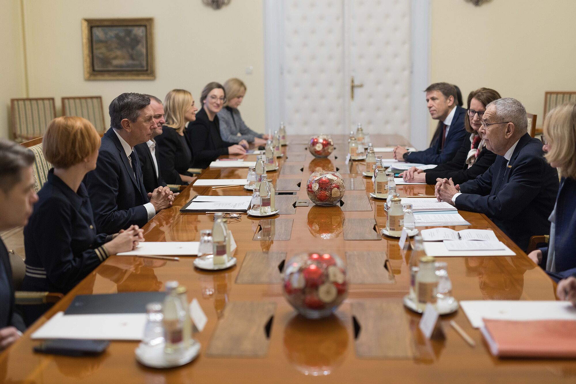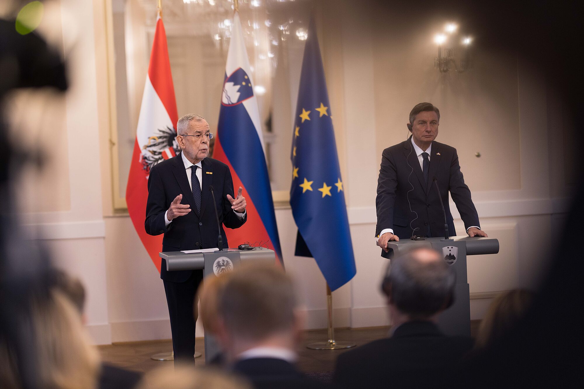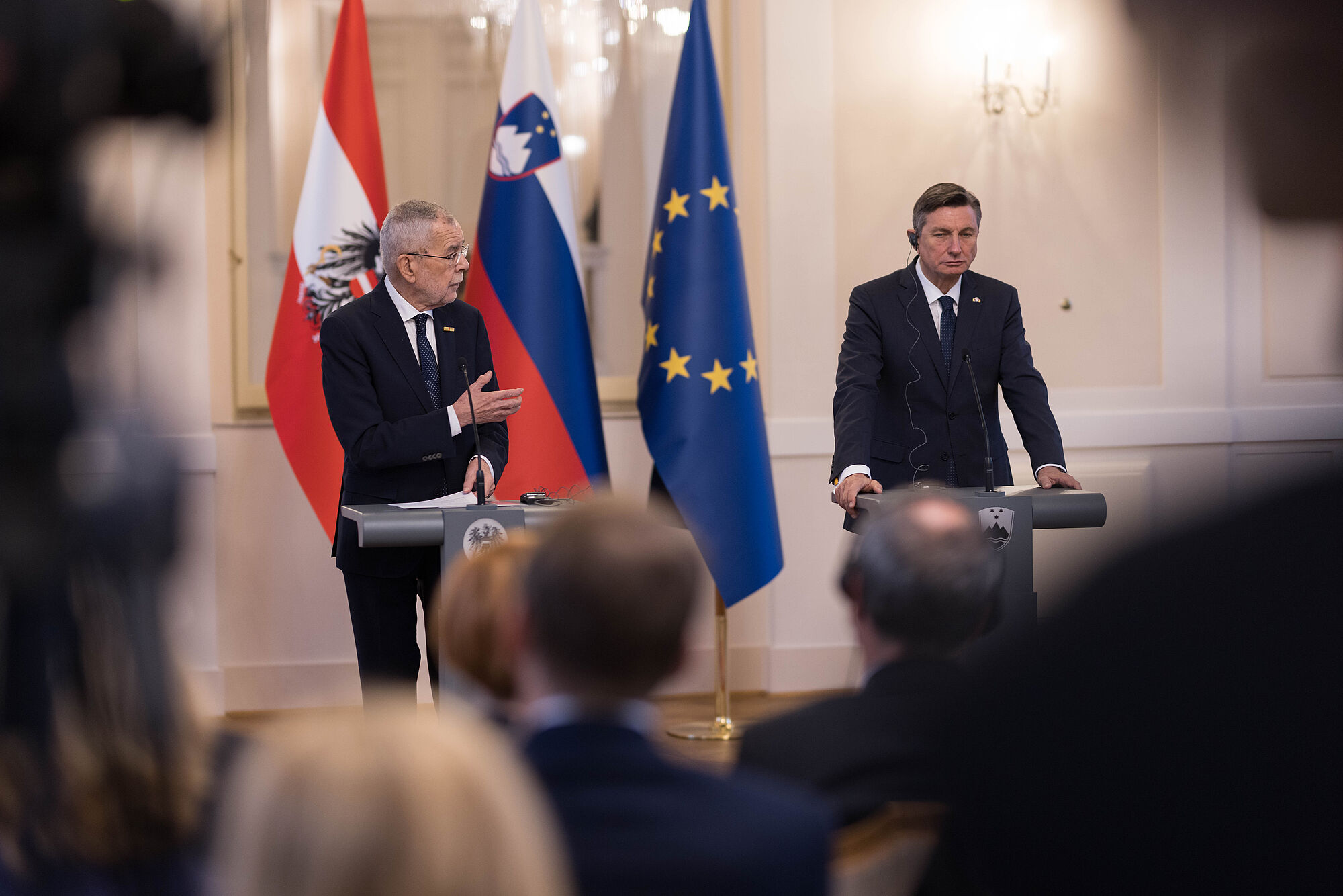 Bei der gemeinsamen Pressekonferenz betonte Borut Pahor, es sei eine "große Ehre", kurz vor seinem Amtsende den österreichischen Präsidenten, den er als "persönlichen Freund" bezeichnete, beim offiziellen Besuch in Ljubljana begrüßen zu dürfen. Ein Treffen zwischen Bundespräsident Van der Bellen und der designierten Präsidentin Pirc Musar, die am Freitag ebenfalls informell zusammenkamen, sieht Borut Pahor als Zeichen, dass die beiden Staatschefs auch künftig ausgezeichnete persönliche Beziehungen pflegen werden. Auch Alexander Van der Bellen dankte Borut Pahor - den er ebenfalls als Freund bezeichnete - für seinen Einsatz bei der Stärkung der bilateralen Beziehungen.