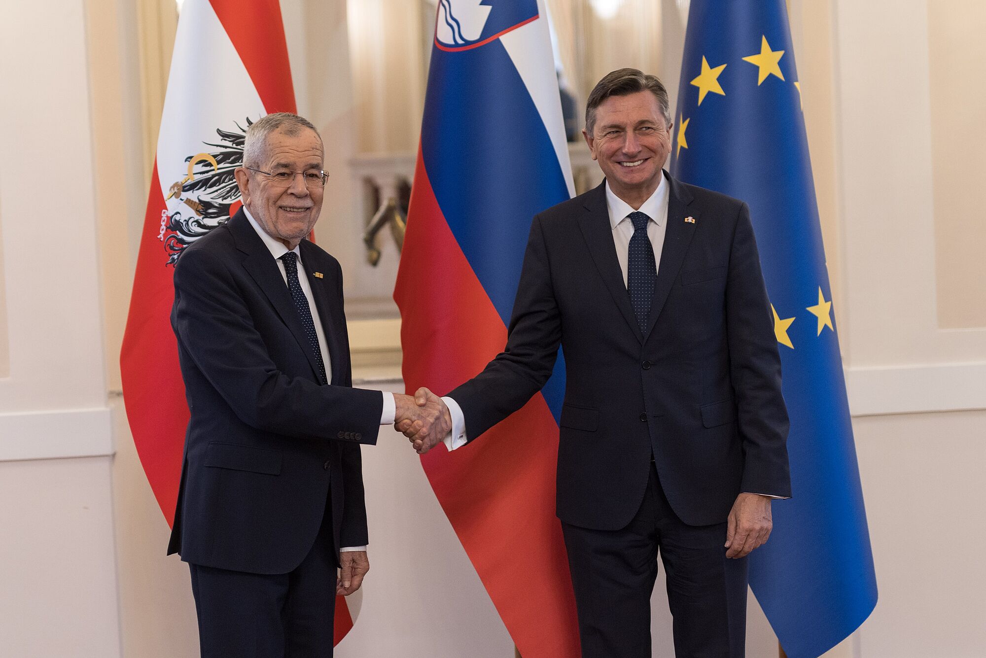 Alle Themen, die @BorutPahor und ich heute diskutiert haben – seien es die #Volksgruppen auf beiden Seiten der Grenze, die Lage i.d. #Ukraine, die #Klimakrise od. die EU-Beitrittsperspektiven d. Westbalkanstaaten –, haben eines gemeinsam: Im #Miteinander liegt die Lösung. (vdb) pic.twitter.com/shmLAUYXC7