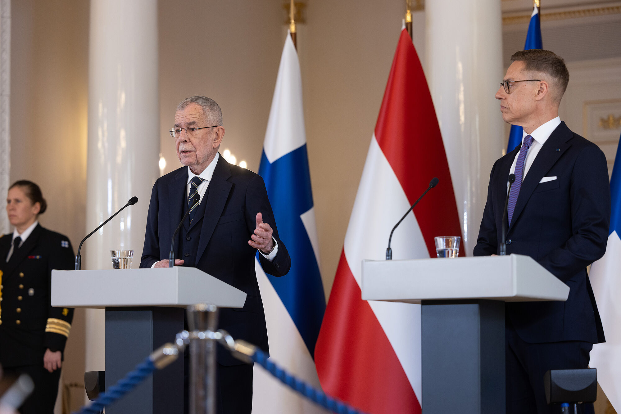 Das Beste für Finnland sei der Beitritt zur NATO gewesen, meinte Präsident Stubb sinngemäß. Er vermisse die aufgegebene Neutralität "in keinster Weise". Er sei bereits in den 1990er-Jahren für einen Eintritt seines Landes in die transatlantische Verteidigungsallianz eingetreten, erinnerte sich der finnische Präsident. Finnland sei die Neutralität nach dem Zweiten Weltkrieg von der damaligen Sowjetunion verordnet worden, argumentierte Alexander Stubb und zog Vergleiche mit der Gegenwart: "Was macht Russland in der Ukraine? Russland will die Ukraine neutralisieren." Er jedenfalls sei sehr stolz, dass Finnland nun der NATO angehöre.