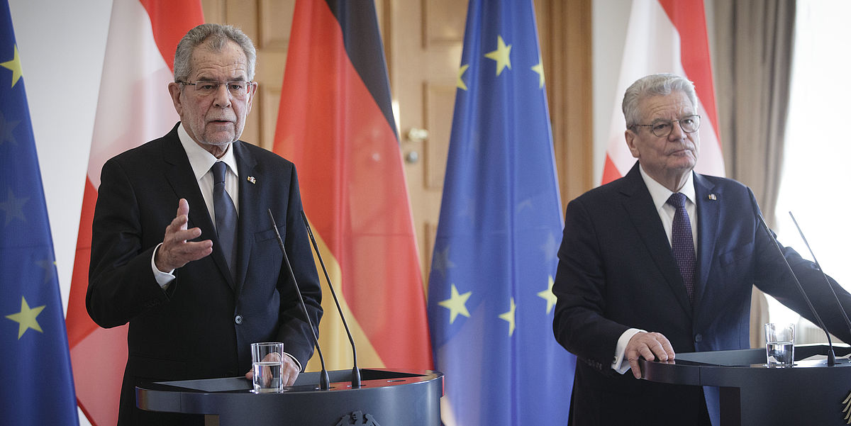 Für viele Deutsche sei der Staatsgast aus Österreich ein Sympathieträger, sagte Gauck in Schloss Bellevue vor Journalisten. Vor allem Van der Bellens wiederholtes Bekenntnis zu Europa hob er hervor: "Zu meiner großen Freude ist das Ja zu Europa gerade von Ihnen zu einer Zeit formuliert worden, da in vielen Ländern Renationalisierungstendenzen Raum greifen", sagte er.