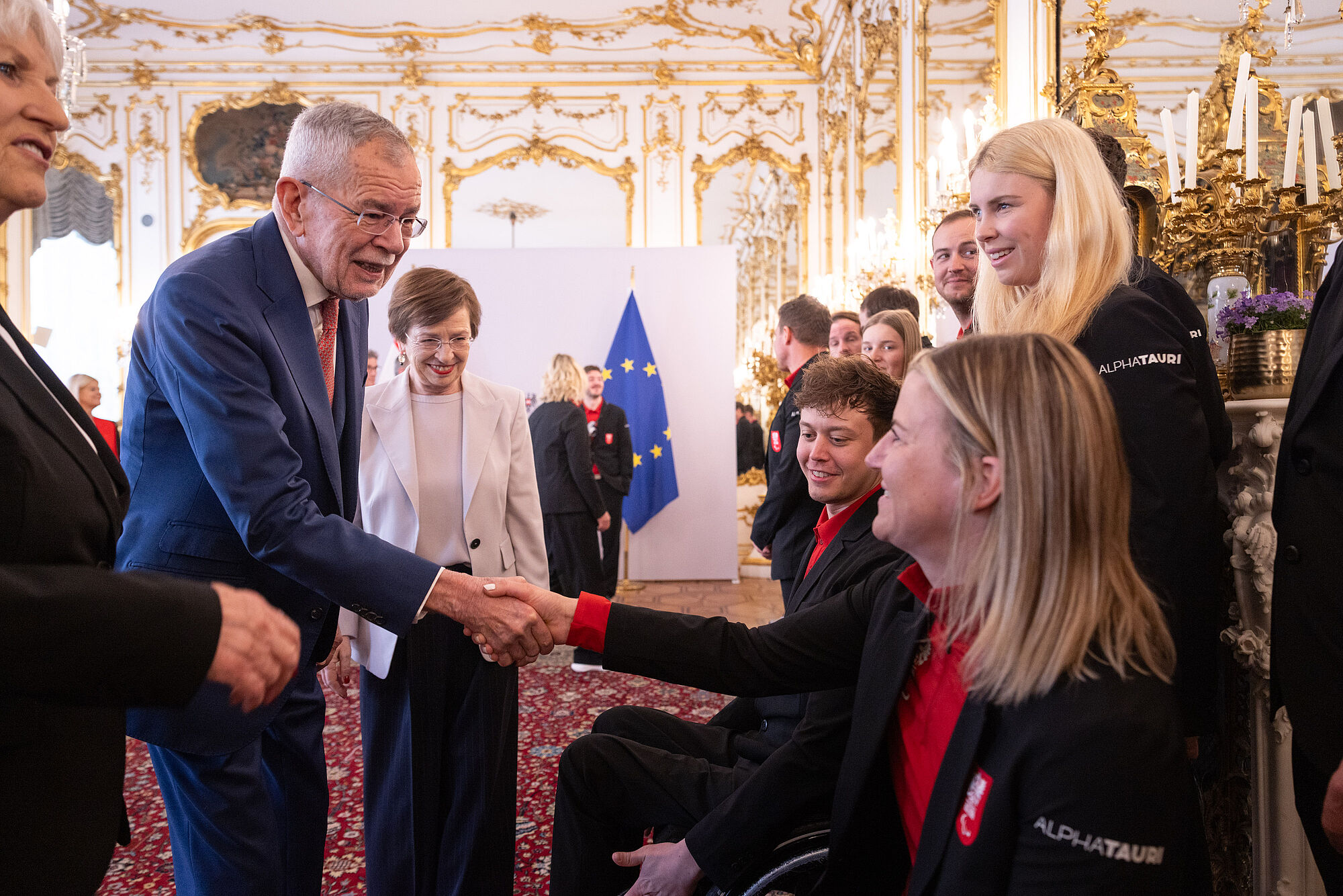Alexander Van der Bellen gratuliert dem erfolgreichsten Paralympischen Team Österreichs in der Hofburg.