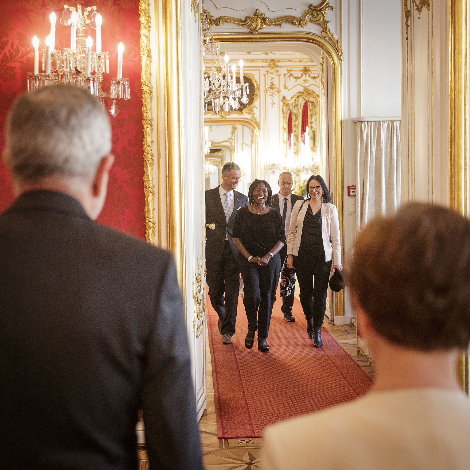 Bundespräsident Alexander Van der Bellen hat gemeinsam mit seiner Frau Doris Schmidauer in der Wiener Hofburg seinen Gast für den Opernball, Auma Obama, empfangen. Die Halbschwester des ehemaligen US-Präsidenten Barack Obama war im Namen ihrer Stiftung "Sauti Kuu", die Jugendliche in Afrika fördert, nach Wien gekommen. "Ich freue mich schon sehr", sagte Auma Obama.