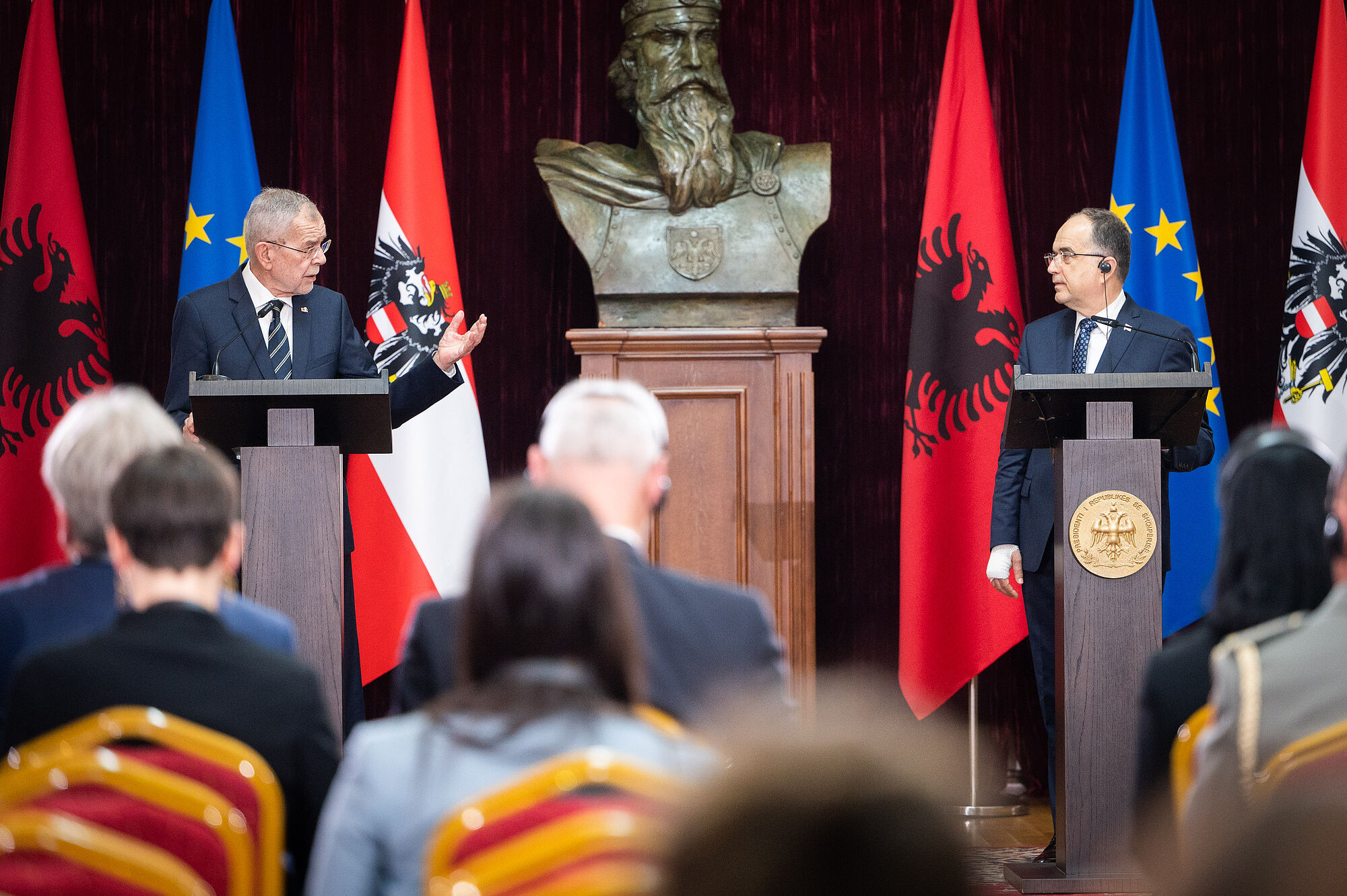 Auch Bundespräsident Van der Bellen lobte den bisherigen Verlauf des sogenannten EU-Screeningprozesses als "sehr gut" und sagte Albanien weiterhin Österreichs Unterstützung im EU-Beitrittsprozess zu. Es sei nun an der Zeit, die Geschwindigkeit für den EU-Annäherungsprozess zu beschleunigen. Zwar könne man kein Datum für einen EU-Beitritt Albaniens nennen, "aber es wird hoffentlich nicht länger dauern, als es seinerzeit zwischen Österreich und der EU gedauert hat ", zeigte sich der Bundespräsident äußerst optimistisch.