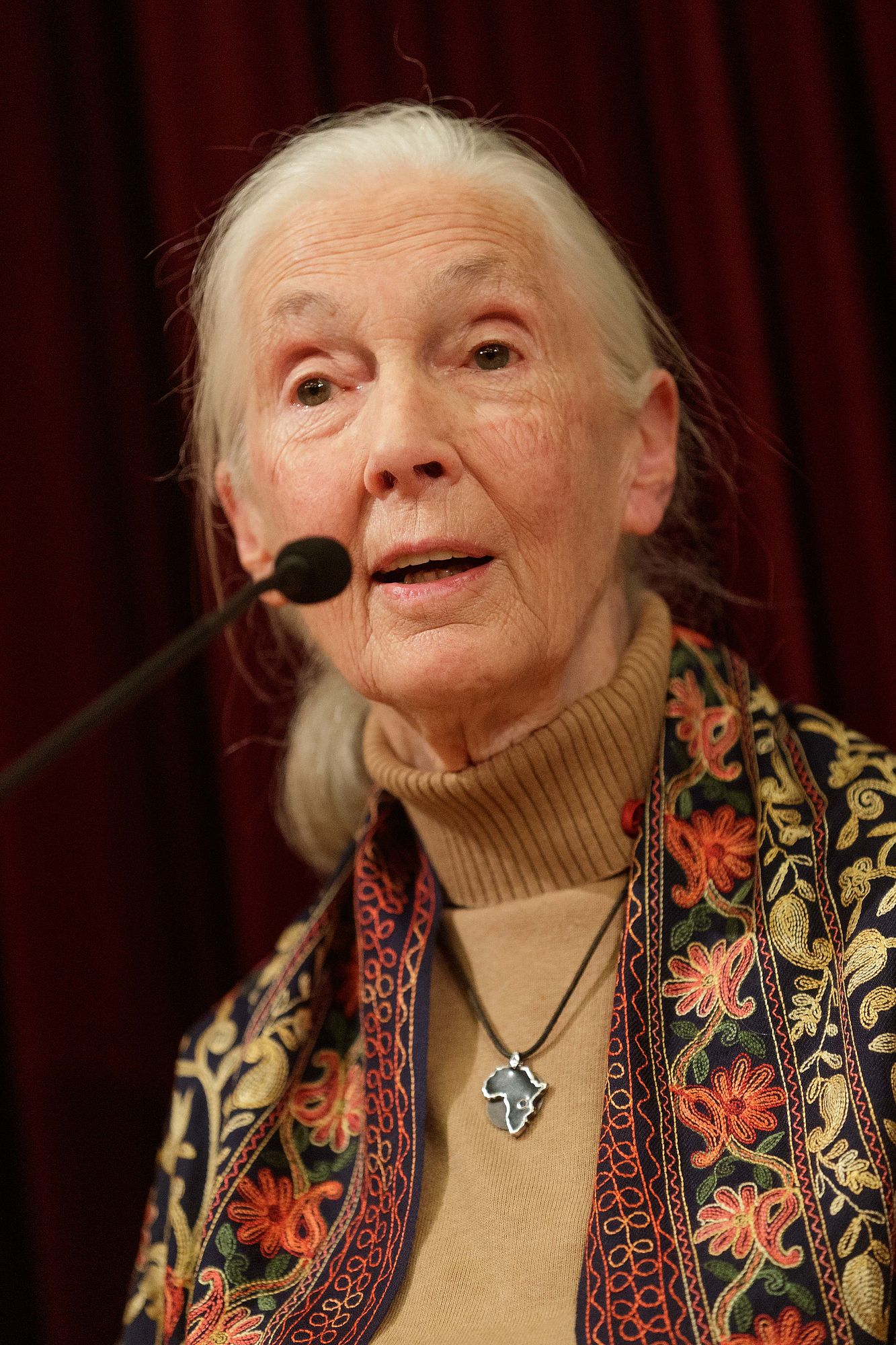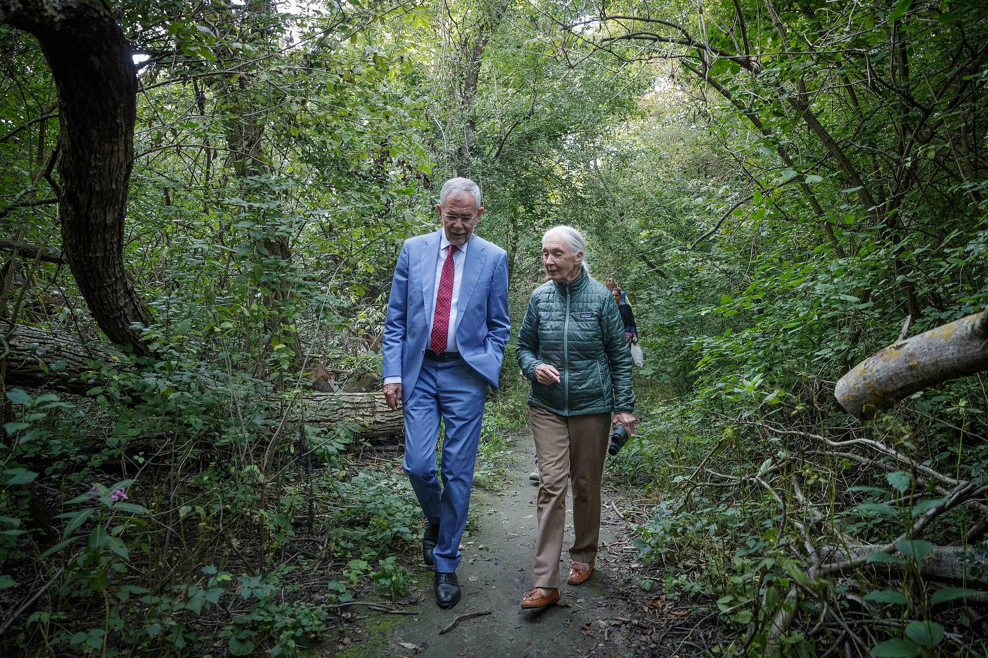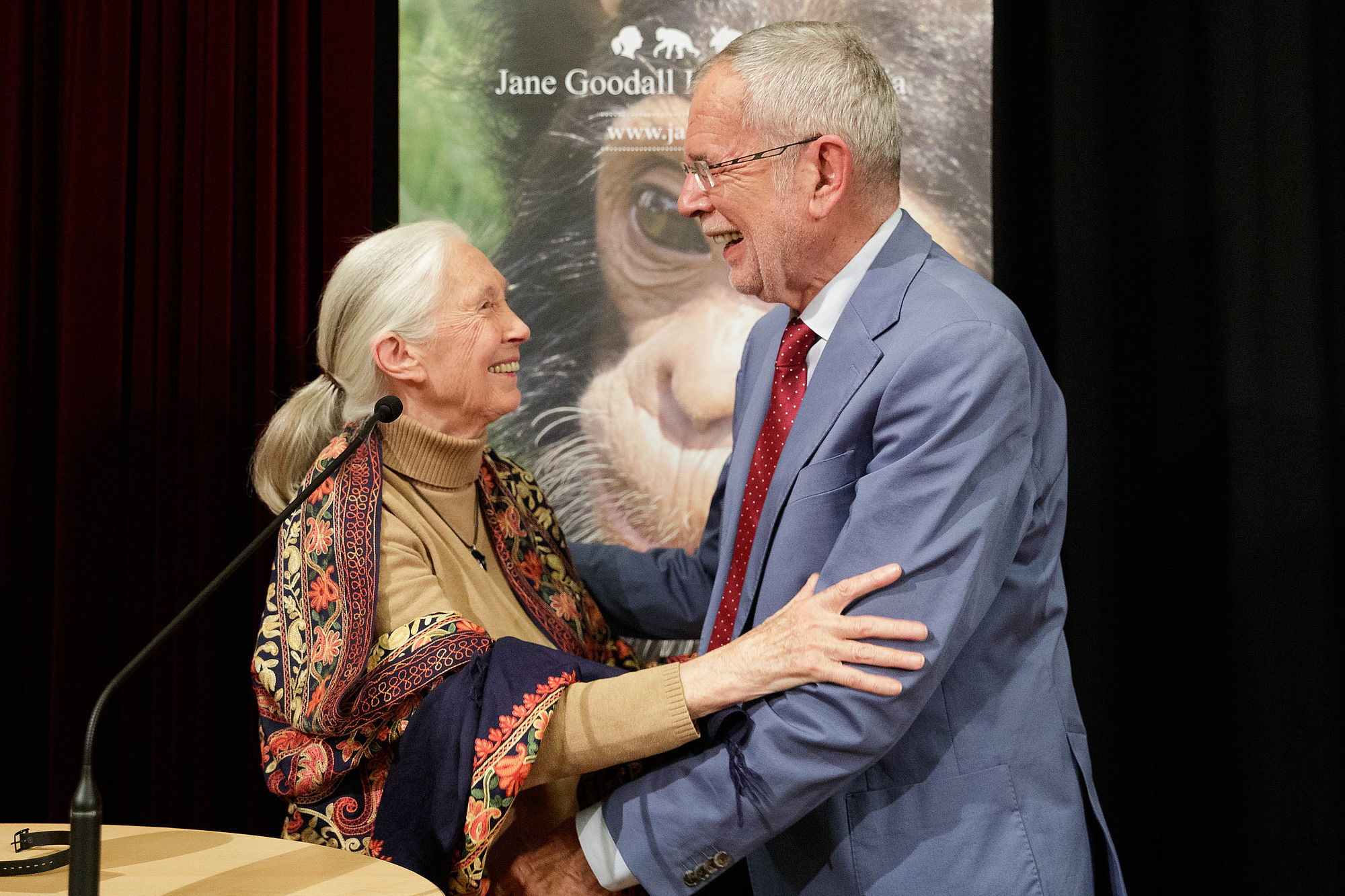 Mit einer Umarmung dankte ihm die Britin im Gegenzug für "diese unglaubliche Ehre" und ahmte dabei auch die Geräusche jener Menschenaffen nach, deren Verhalten sie in den 1960er-Jahren in Tansania zu studieren begonnen hatte, den Schimpansen. "Es ist das Tier, das uns am nächsten ist", erläuterte Jane Goodall.