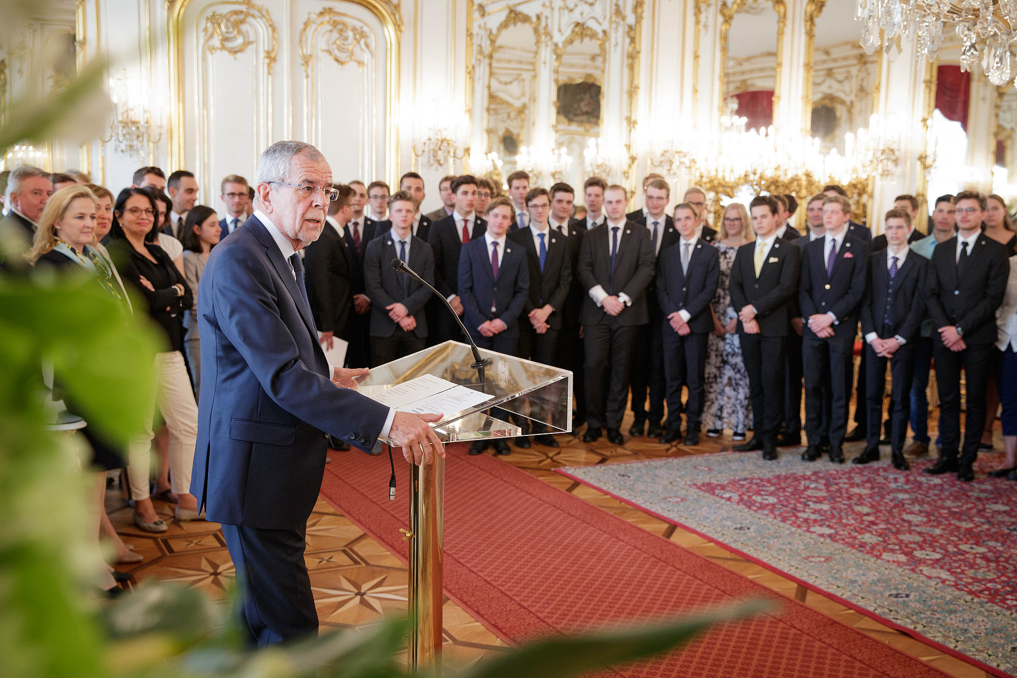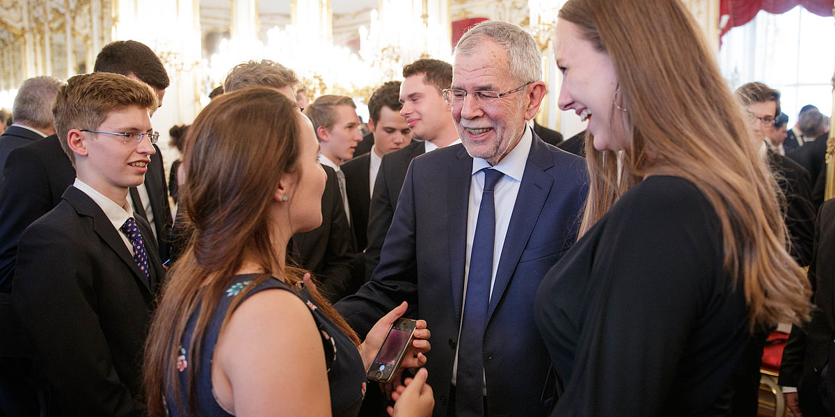 Bundespräsident Alexander Van der Bellen empfängt junge Österreicherinnen und Österreicher, die demnächst im Ausland ihren Gedenk-, Friedens- oder Sozialdienst absolvieren werden.