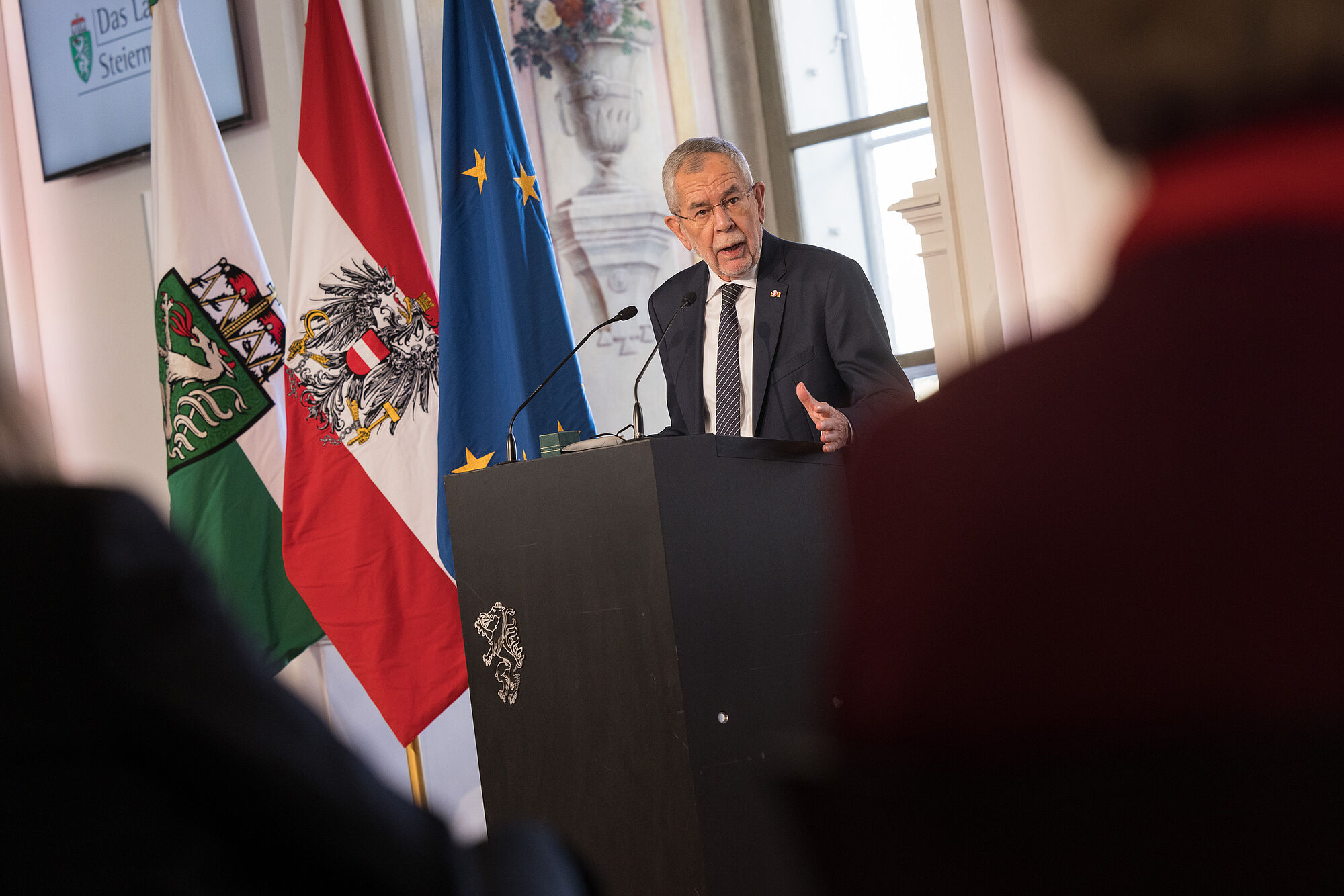 Besondere Freude macht Schützenhöfer Bundespräsident Van der Bellens "Bekenntnis zu Mürzsteg" in der östlichen Obersteiermark, wo Österreichs Bundespräsidenten einen Sommersitz in Form einer Jagdvilla haben. Außerdem habe er "Österreich erfolgreich und souverän durch die Krise gesteuert". Zum Abschluss sprach der Landeshauptmann Bundespräsident Van der Bellen noch persönlich an: "Viel Glück und Gesundheit für deine weiteren Vorhaben, die du uns zum geeigneten Zeitpunkt wissen lassen wirst."