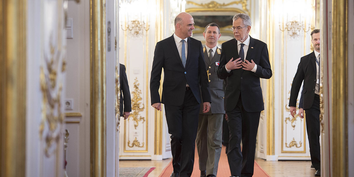 Auch Alexander Van der Bellen sprach von "ausgezeichneten" Beziehungen mit der Schweiz und betonte vor allem die "sehr intensiven Kontakte" auf wirtschaftlicher Ebene. Die Entwicklungen in der Schweiz seien "sehr interessant zu beobachten" und aufgrund der vielen politischen und institutionellen Unterschiede "nicht immer leicht zu verstehen", so Bundespräsident Van der Bellen. Umgekehrt sei Österreich für die Schweiz nicht nur als "unmittelbarer Nachbar" interessant, sondern auch als Mitglied der Europäischen Union. "Das bedeutet natürlich, dass man laufend Kontakte entwickeln muss", um sich bei bestimmten Fragen gegenseitig zu unterstützen. Alexander Van der Bellen zeigte sich optimistisch, dass die Fragen "so wie bisher" "im gegenseitigen Einvernehmen" lösbar sein werden.