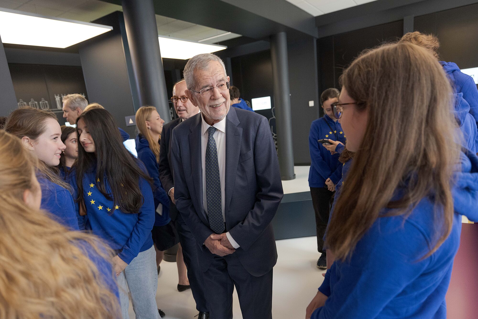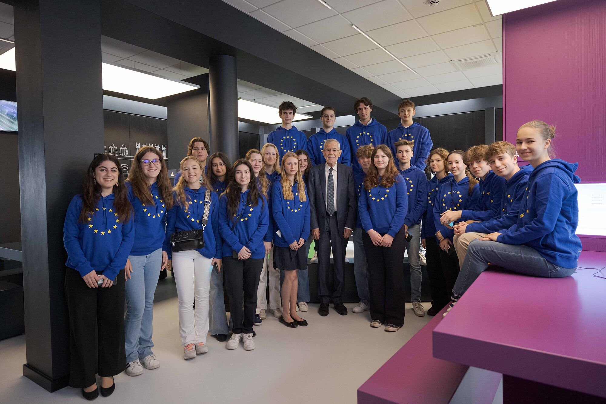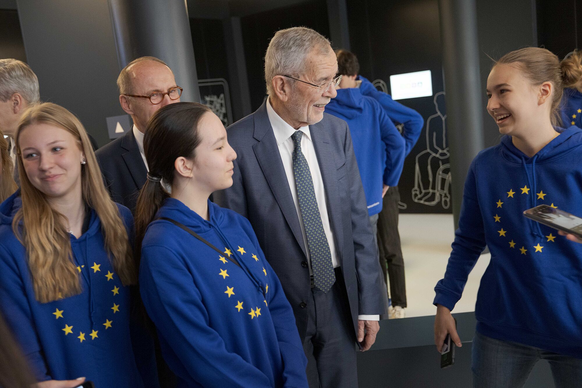 Bundespräsident mit Jugendlichen bei Dauerausstellung "Erlebnis Europa"