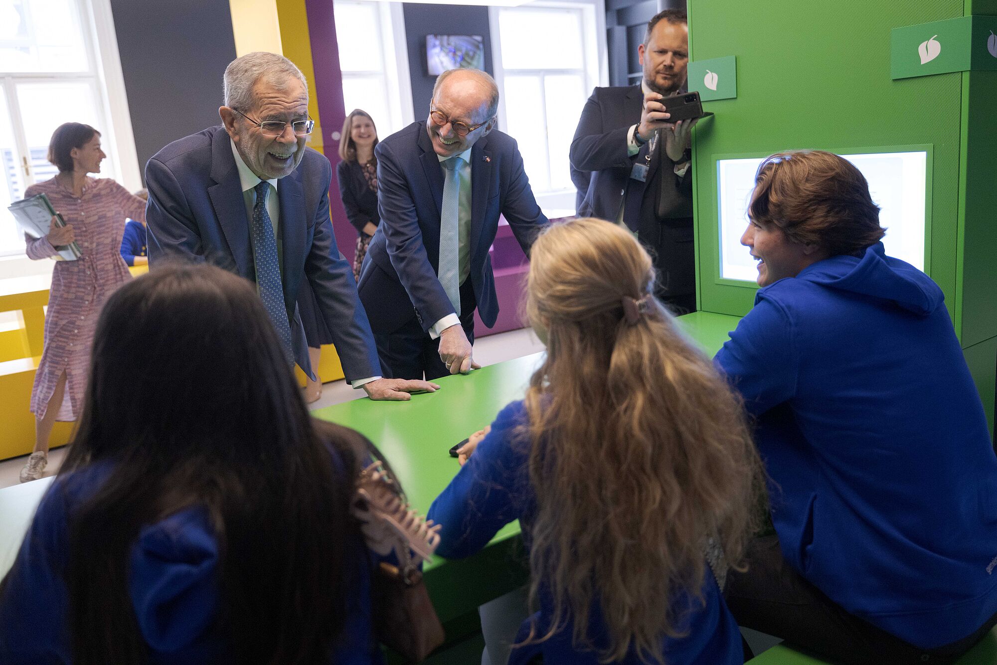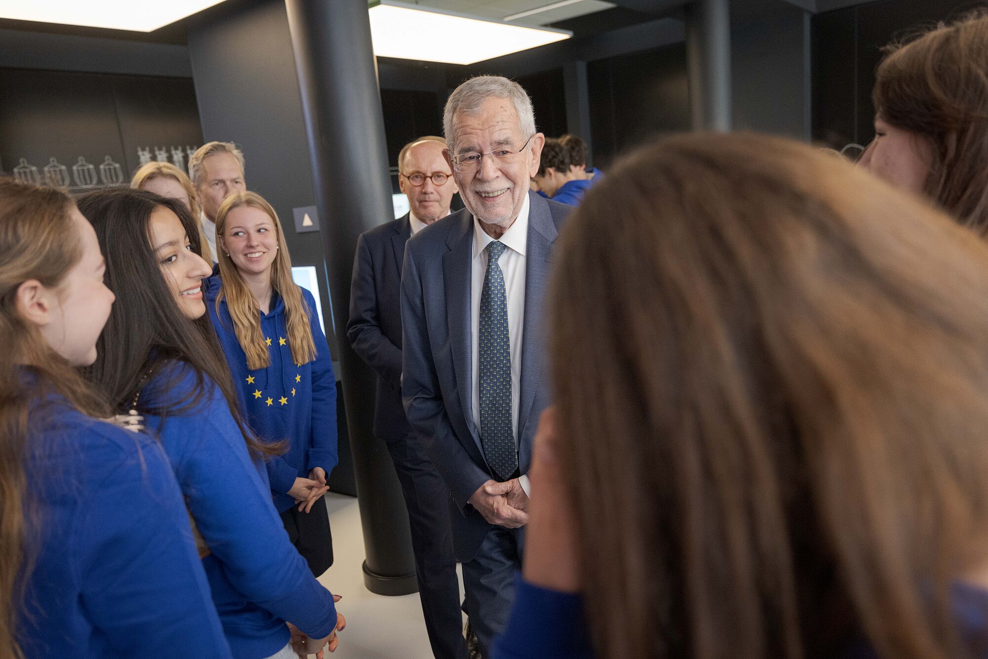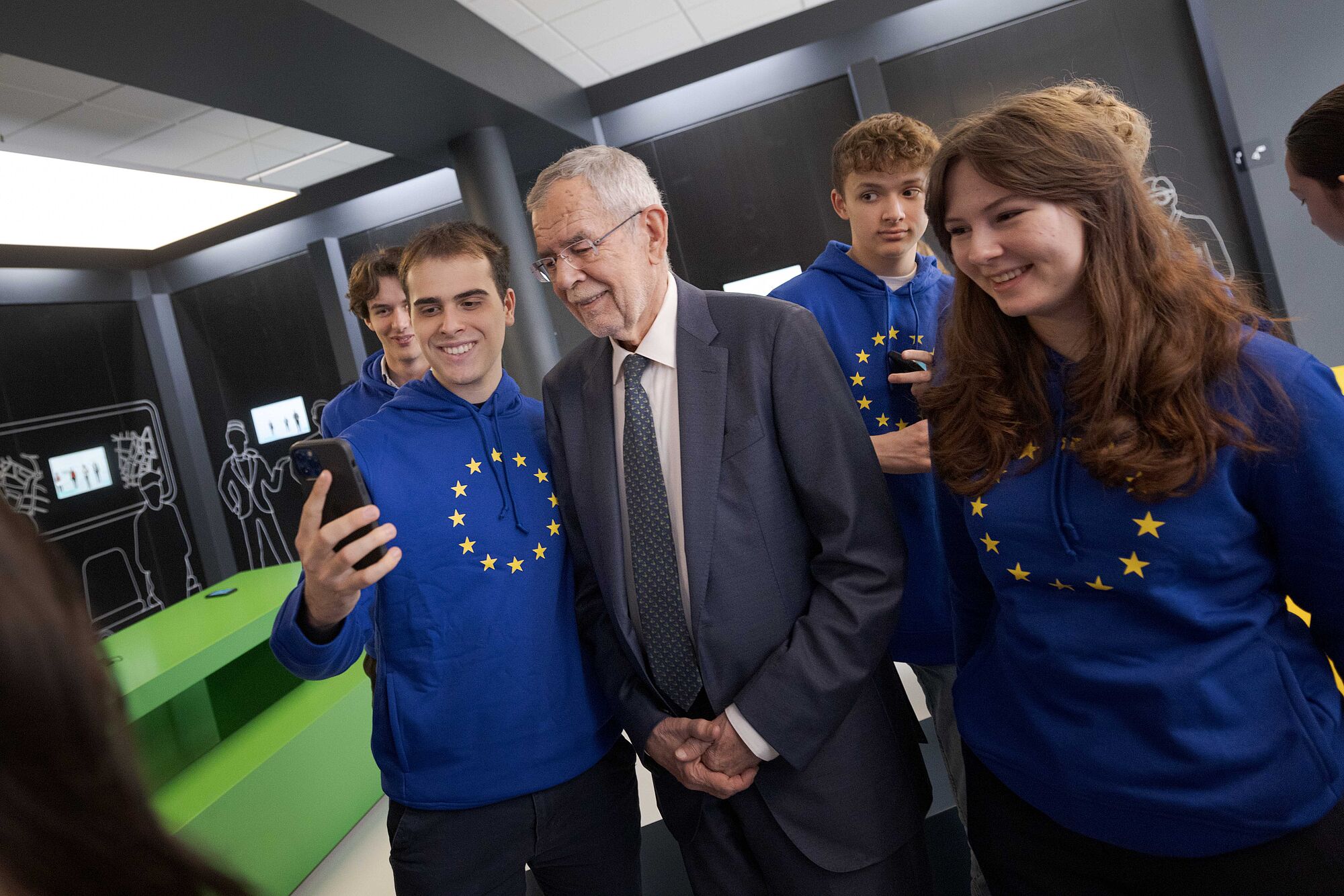 Bundespräsident mit Jugendlichen bei Dauerausstellung "Erlebnis Europa"