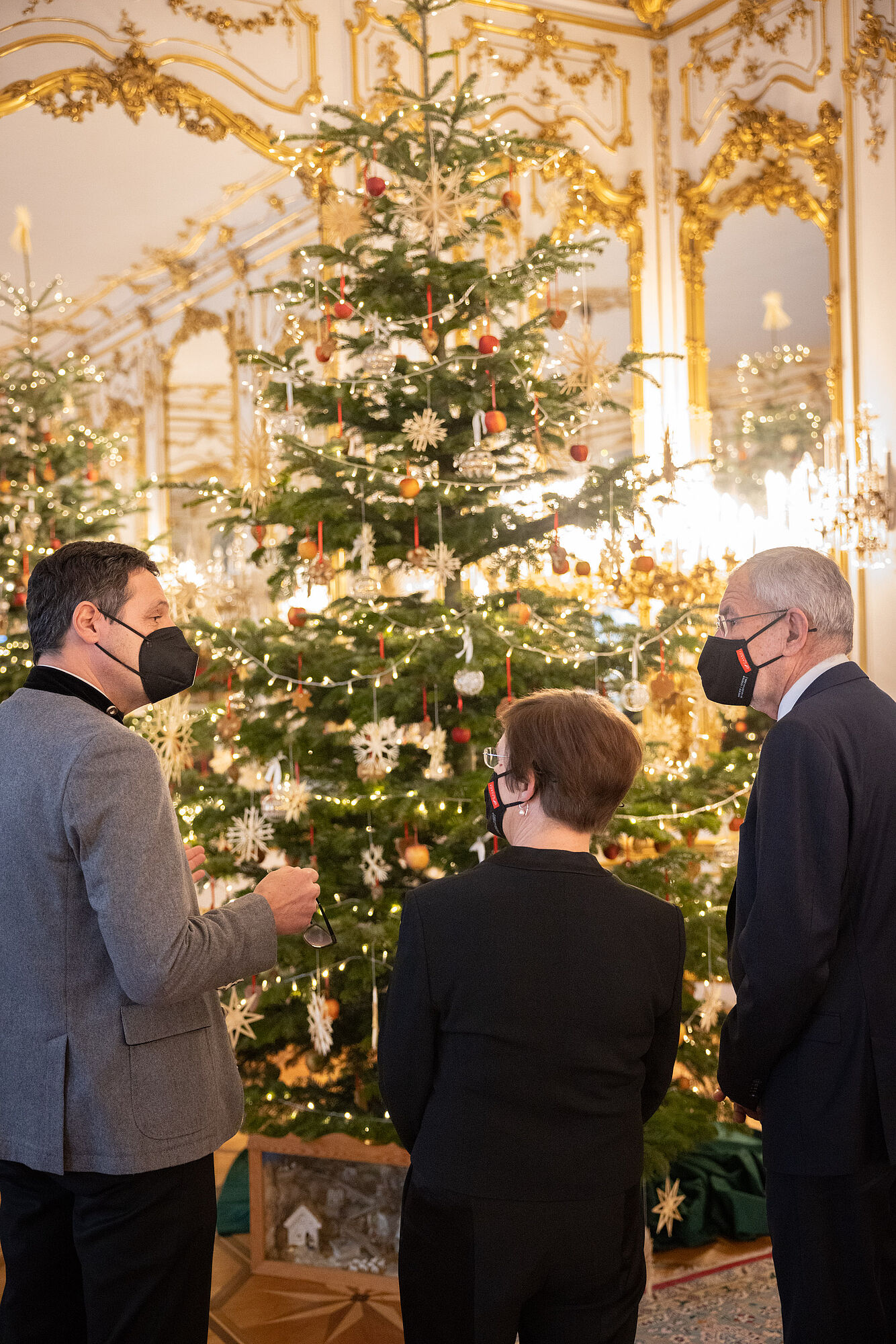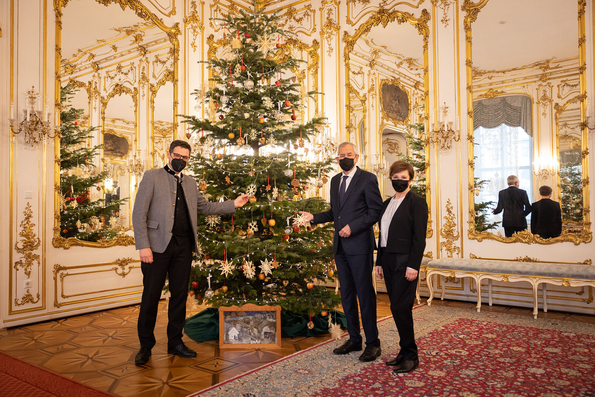 Ein Tiroler Baum hat es dieses Jahr in die Hofburg geschafft: Bundespräsident Alexander Van der Bellen, selbst gebürtiger Tiroler, erhielt für die Präsidentschaftskanzlei einen Christbaum vom Endfeldhof in Breitenbach im Tiroler Unterland. Bei dem guten Stück handelt es sich um eine 15 Jahre alte und vier Meter hohe Nordmanntanne. Eine "außergewöhnlich schön gewachsenen Tanne", wie der Tiroler Bundesratspräsident Peter Raggl meinte, der den Baum offiziell an den Bundespräsidenten übergab.