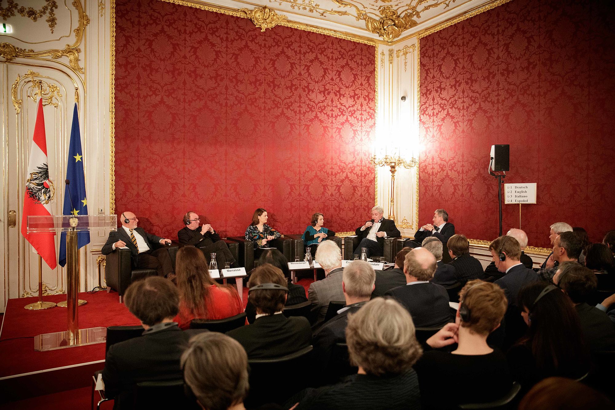 "Wir brauchen ein neues Narrativ, da alle EU-Staaten im globalen Maßstab klein sind", so Alexander Van der Bellen. Das große Problem sei, wie man auch die EU-kritischen Menschen erreichen könne. Zu diesem Thema unterhielten sich mehrere preisgekrönte Autoren aus ganz Europa.