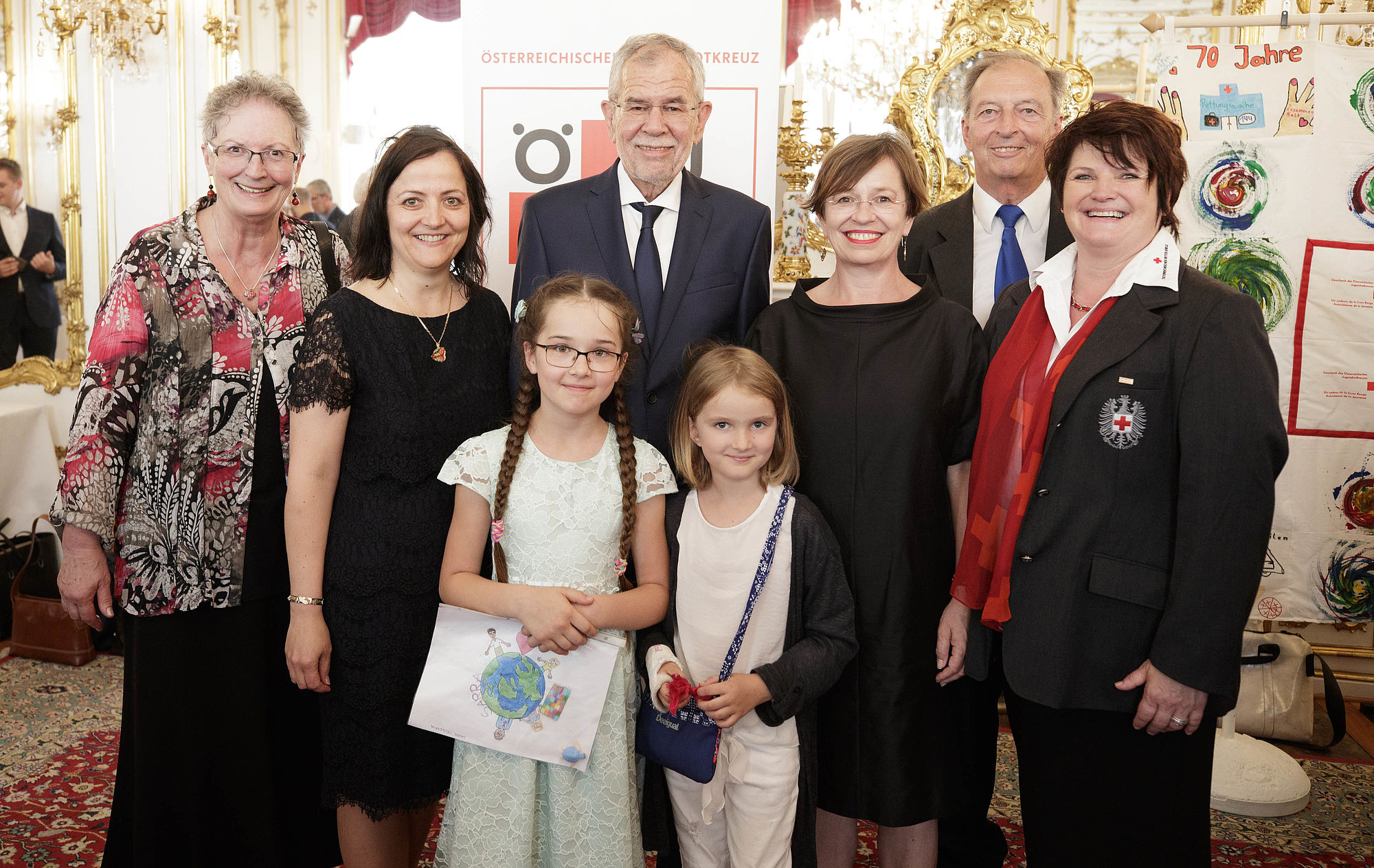 Anlässlich des 70. Jahrestages der Wiedergründung des Österreichischen Jugendrotkreuzes treffen Alexander Van der Bellen und Doris Schmidauer eine Delegation des Österreichischen Jugendrotkreuzes in der Hofburg.