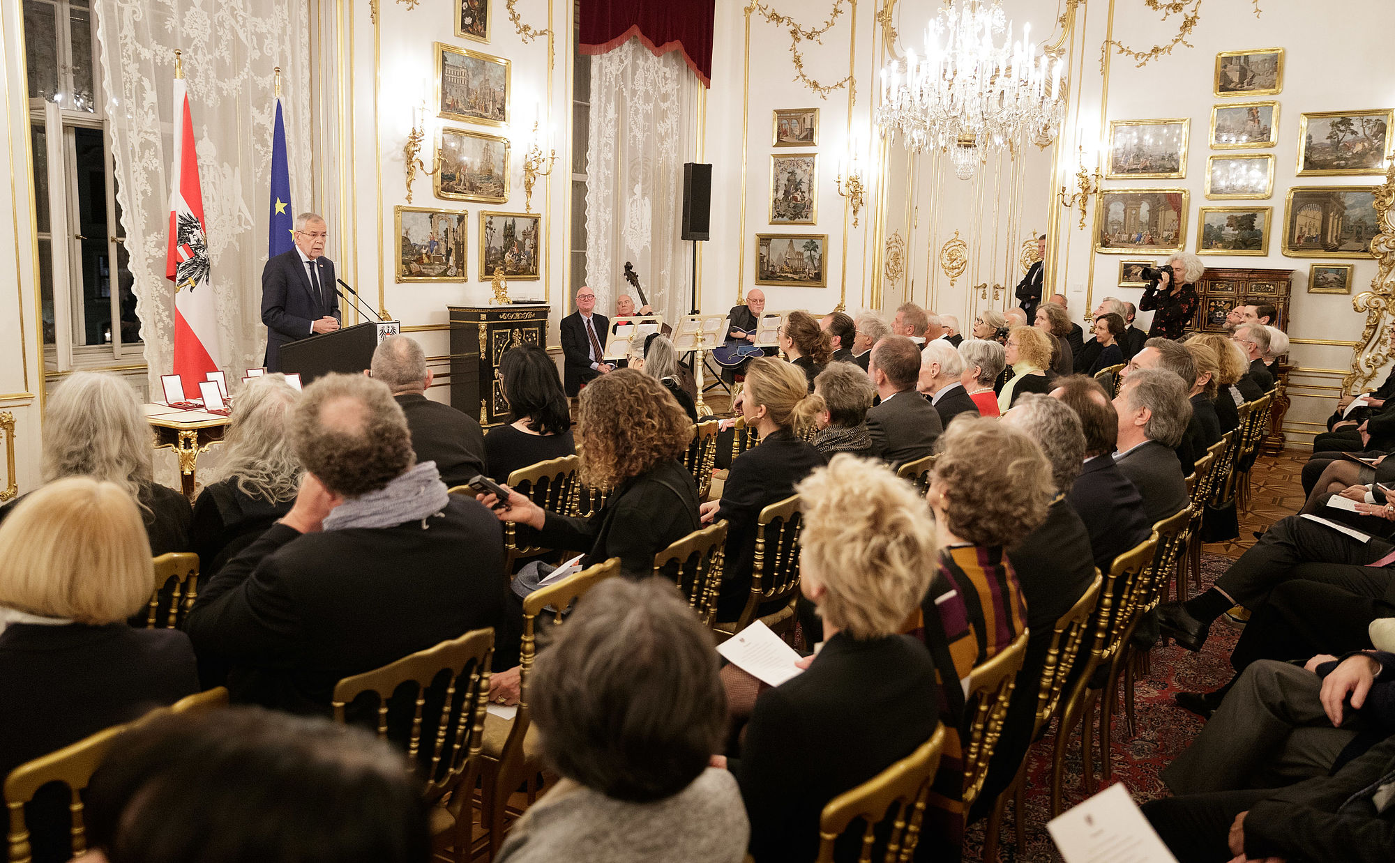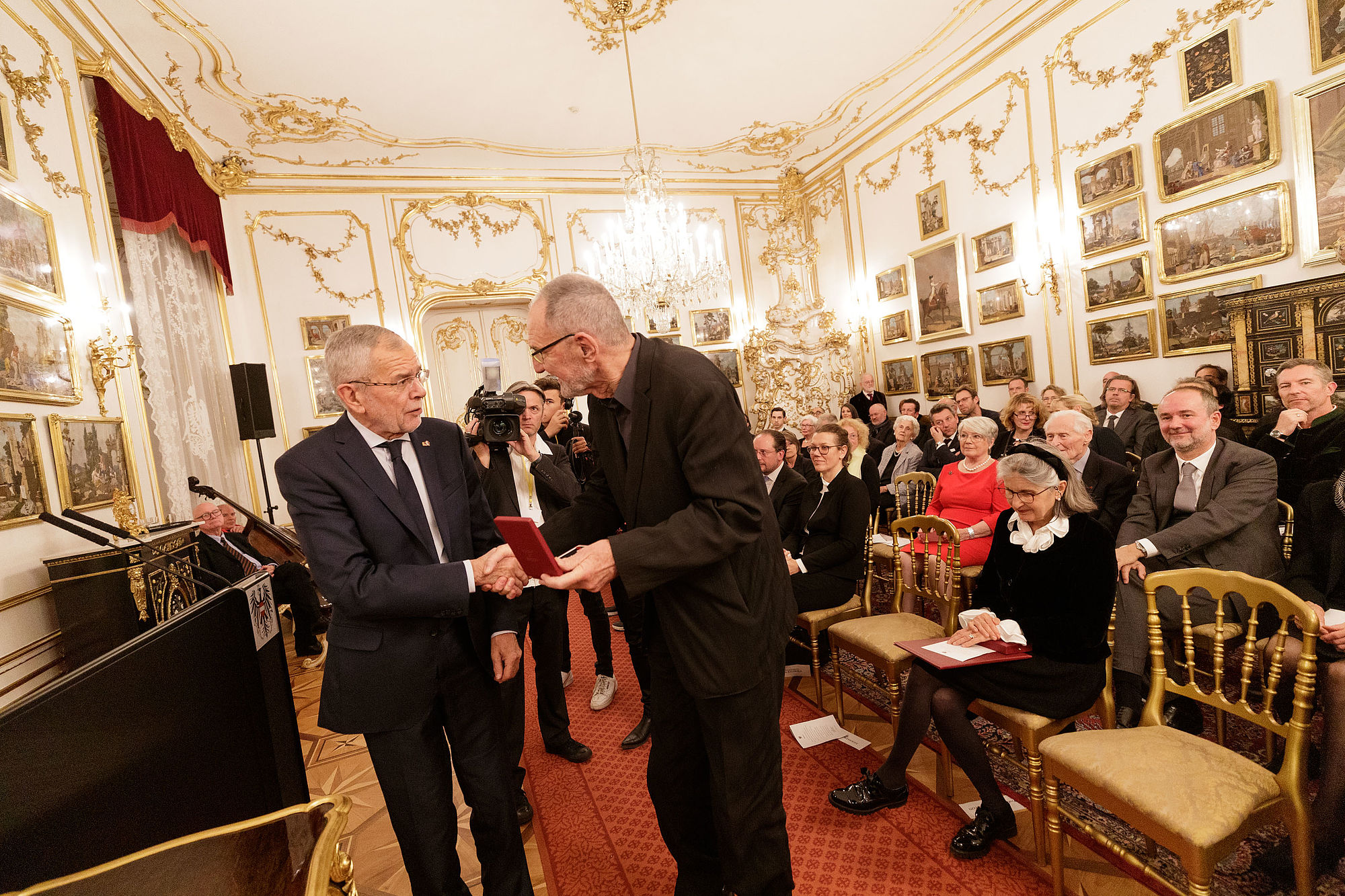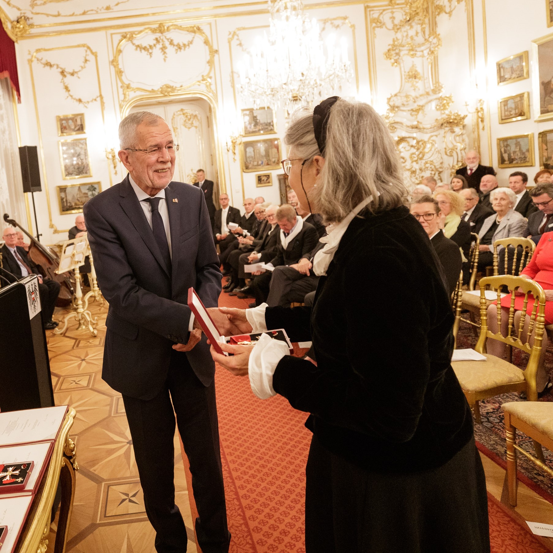 Bundespräsident Alexander Van der Bellen hat im Rahmen des jährlich stattfindenden Zusammentreffens mit den Mitgliedern der Kurie für Wissenschaft und Kunst das Österreichische Ehrenzeichen für Wissenschaft und Kunst an Lorraine Daston, Franz Koglmann, Eva Schlegl, Thom Mayne, Kiki Smith und Patti Smith überreicht.