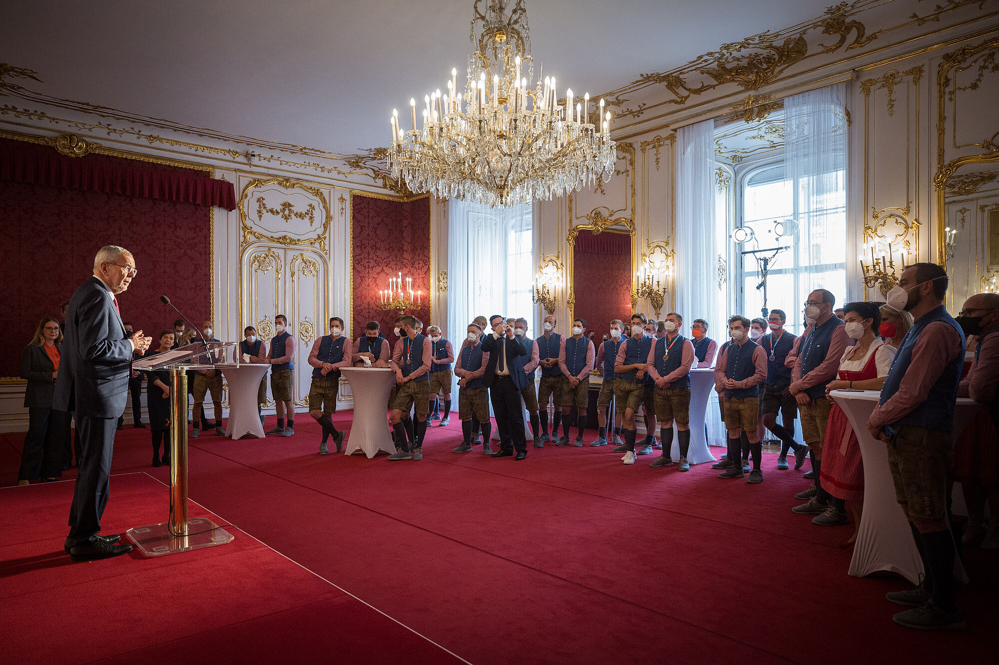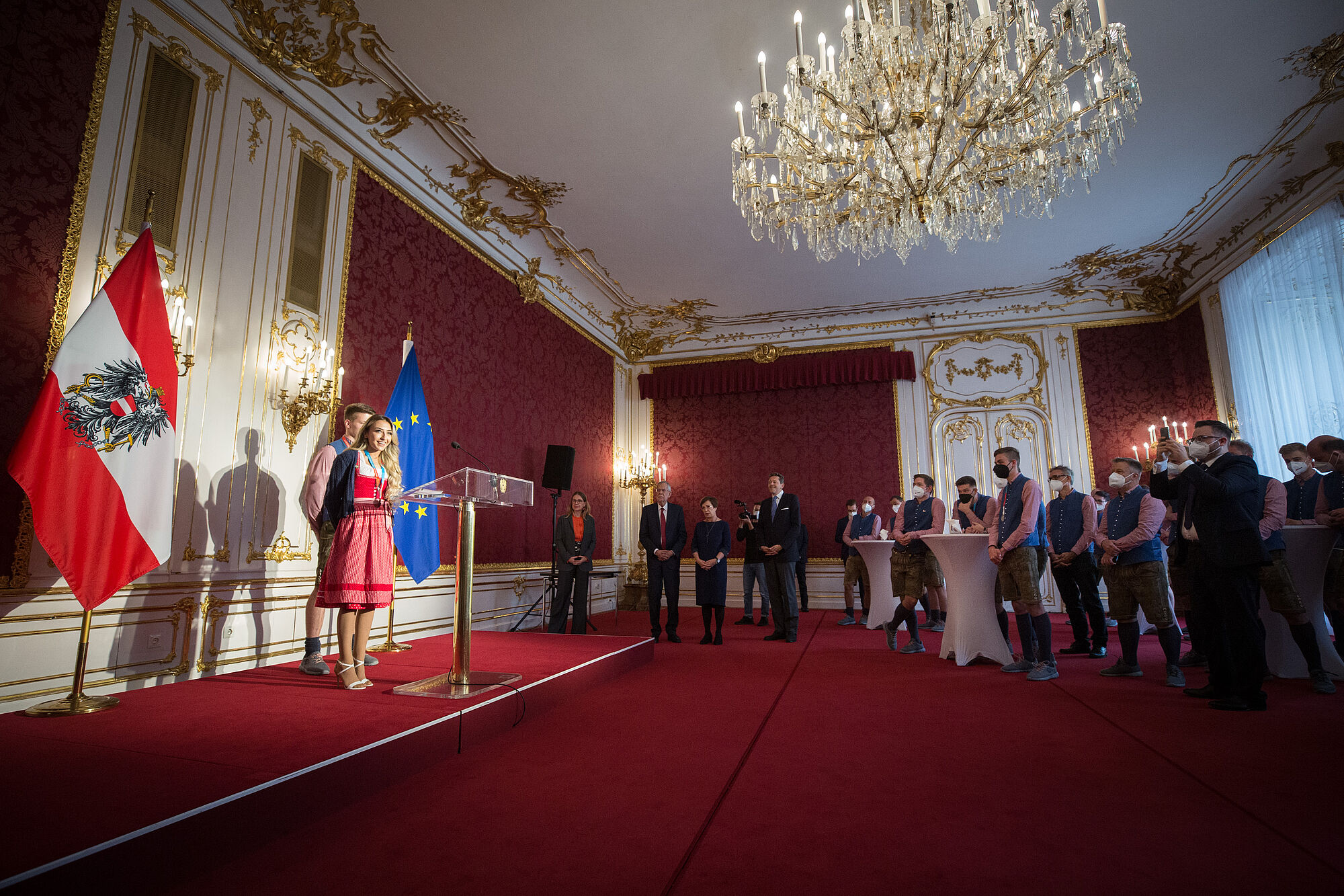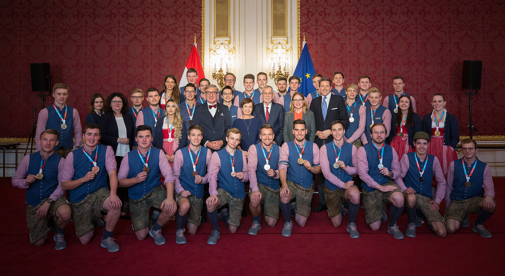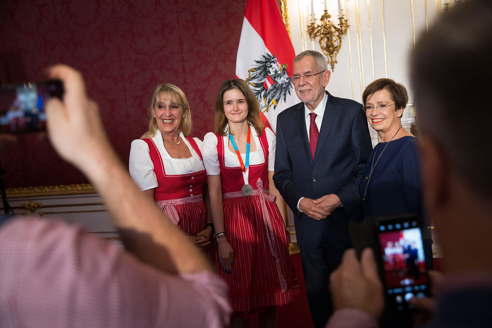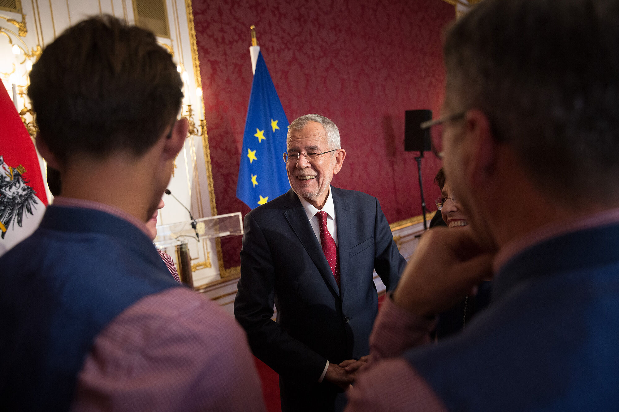 Heute wurde das Team Austria von Bundespräsident Alexander Van der Bellen im Beisein von Wirtschaftsministerin Margarete Schramböck und WKÖ-Präsident Harald Mahrer in der Wiener Hofburg empfangen und geehrt.
