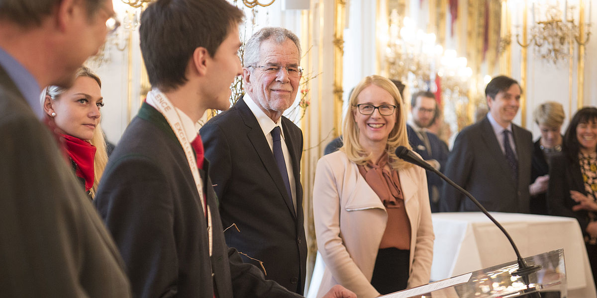 Bundespräsident Alexander Van der Bellen trifft in seinen Amtsräumen die Teilnehmerinnen und Teilnehmer der Berufsweltmeisterschaften WorldSkills, die 2017 in Abu Dhabi statt gefunden haben.