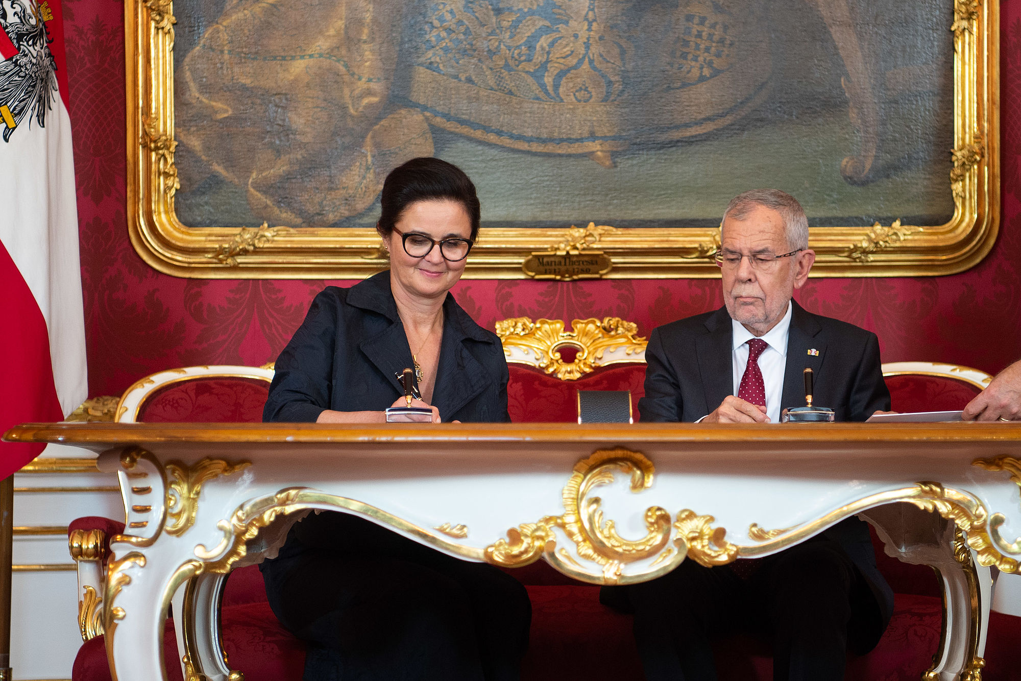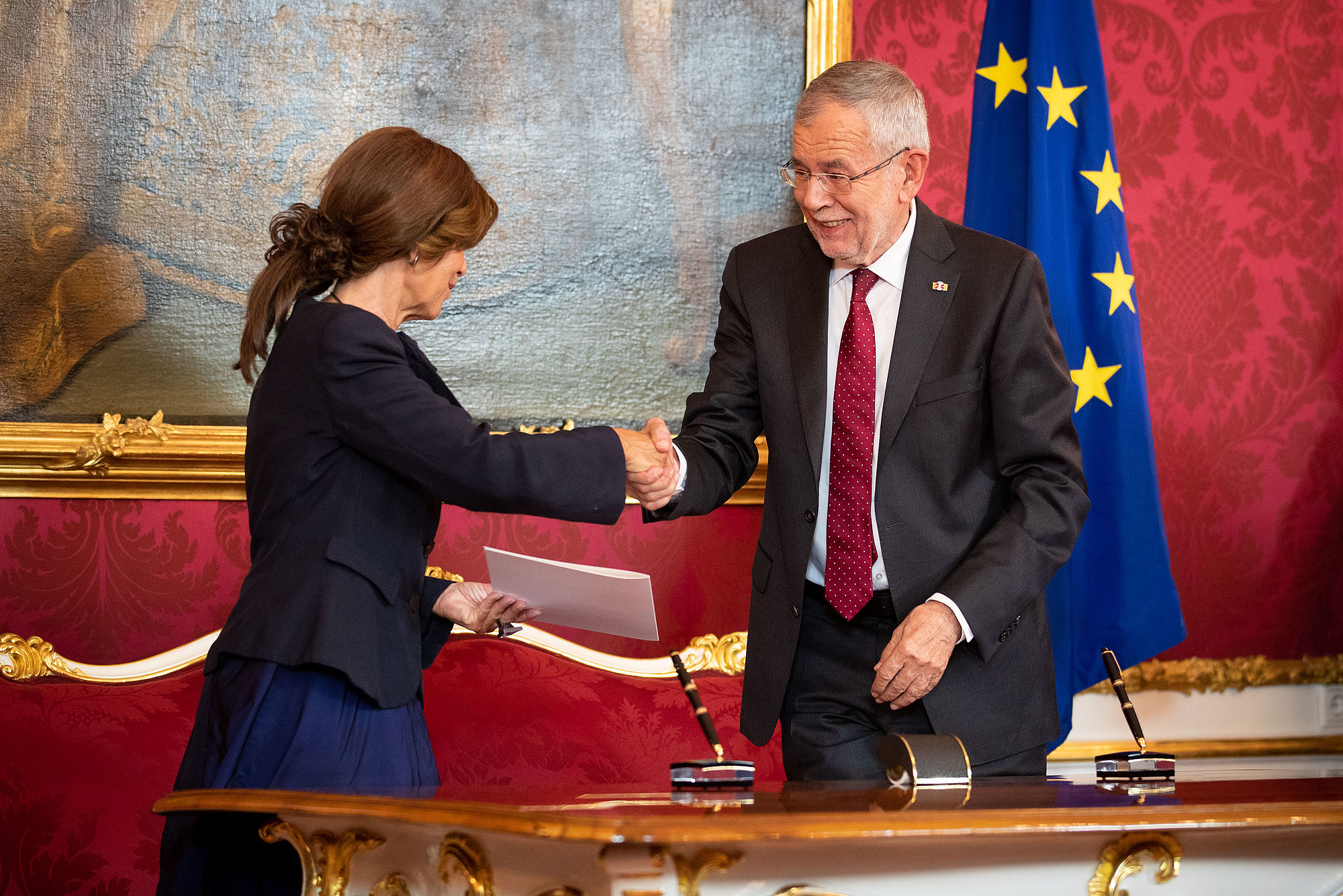Gemäß Artikel 70 Absatz 1 des Bundes-Verfassungsgesetzes ernenne ich Sie, Frau Brigitte Bierlein, zur Bundeskanzlerin.