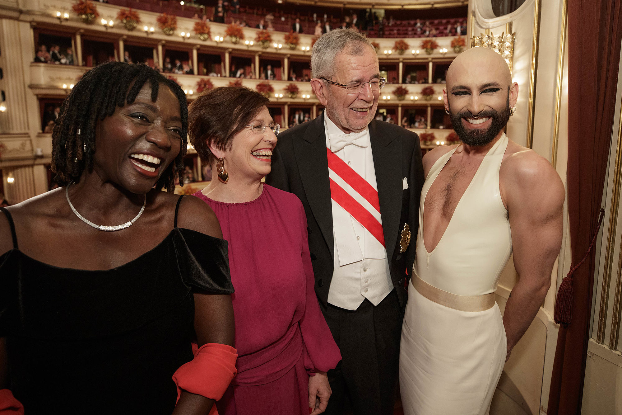Der Bundespräsident war auch sehr begeistert von "der Stimmung, die hier herrscht". Am Ball gebe es "Tausende von Leuten, die gemeinsam tanzen". Der Wiener Opernball sei einmalig, "ich weiß nicht, ob es das noch einmal gibt", sagte Alexander Van der Bellen, der sich außerdem auch besonders über den Besuch von Conchita Wurst alias Tom Neuwirth freute. Sie habe ein "völlig verändertes Outfit".