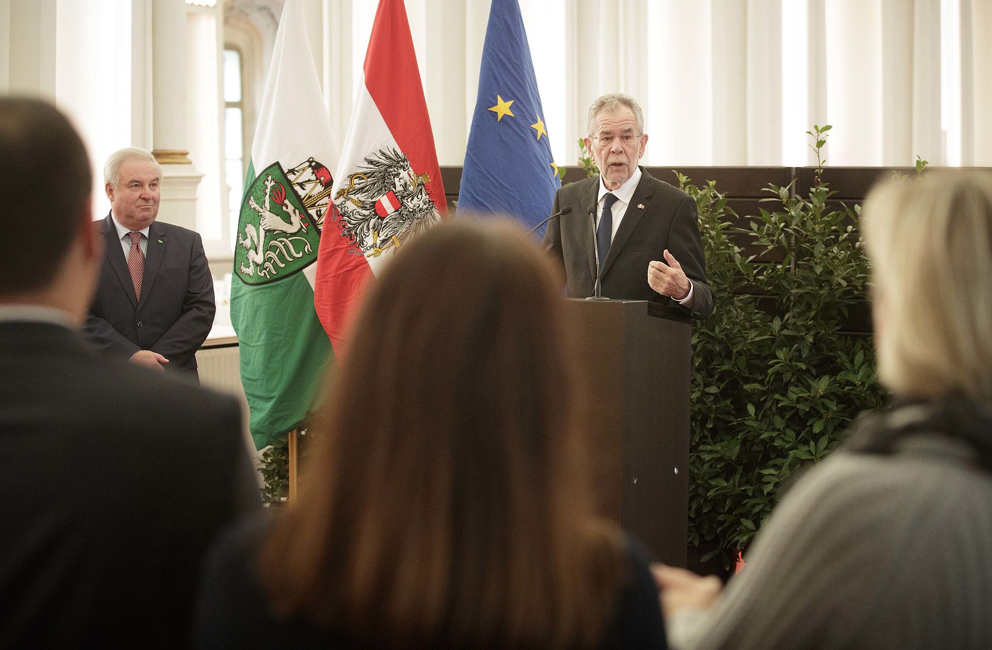 Der Bundespräsident war zwar seit seiner Amtseinführung schon mehrfach in der Steiermark, vor allem in Mürzsteg und bei den Special Olympics, doch am Mittwoch war es der erste offizielle Besuch. Hermann Schützenhöfer dankte Alexander Van der Bellen, dass er "in einer politisch bewegenden Zeit ein besonnener, ausgleichender und fester Bundespräsident" sei. Der steirische Landeshauptmann verlasse sich darauf, dass er das Richtige mache und die Geschicke mit "guter und ruhiger Hand" führe.