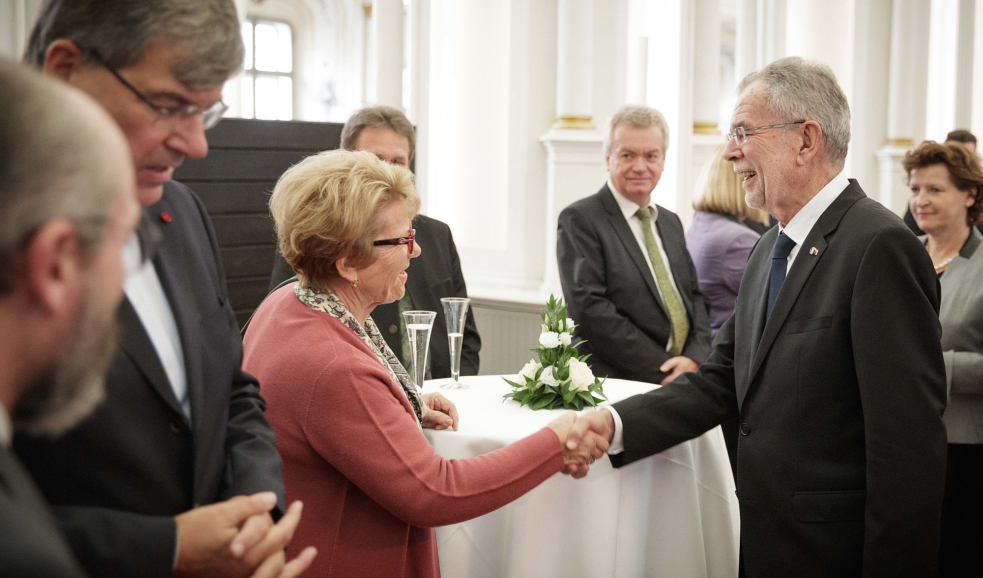Bundespräsident Alexander Van der Bellen meinte, dass er sich mittlerweile an die "habsburgischen Geweihe" und ausgestopften Tiere im Jagdschloss gewöhnt habe. Er schwärmte von der Südsteiermark und lobte die international hervorstechende Forschungs- und Entwicklungsquote. Diese sei auf die forschungsintensiven Unternehmungen zurückzuführen sowie auf die Kooperationen mit den Hochschulen. Letztere freue ihn als "Uni-Menschen" besonders. Landeshauptmann-Stellvertreter Michael Schickhofer sprach von einem konstruktiven und freundschaftlichen Gespräch mit Alexander Van der Bellen.