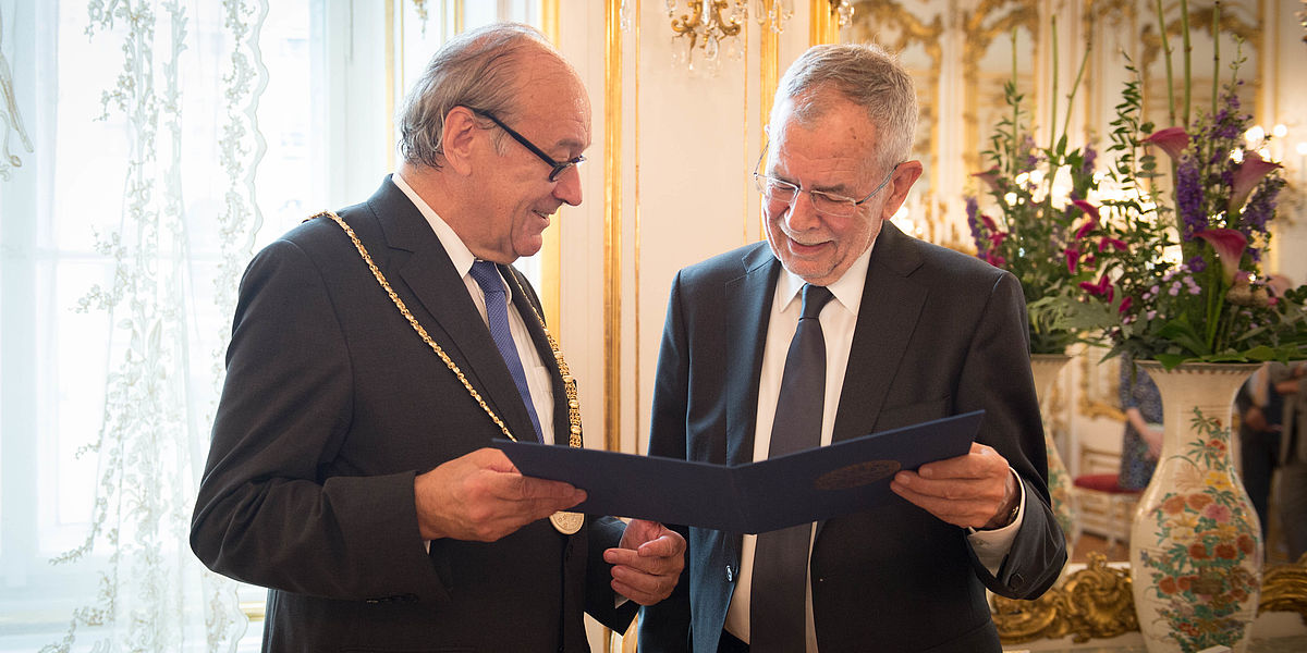 Bundespräsident Alexander Van der Bellen bei der Übernahme der Patronanz über die »Europäische Akademie der Wissenschaften und Künste«, einem der größten Think Tanks Europas.