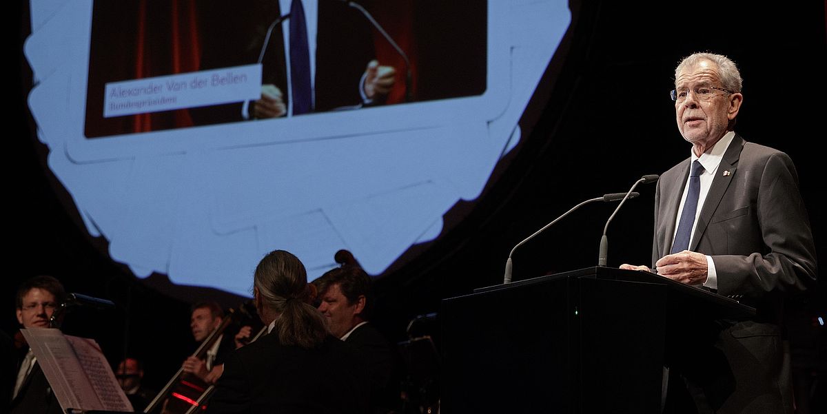 (Anmerkung: Der Bundespräsident wurde von einem Torero mit rotem Tuch von seinem Sitz zum Rednerpult geleitet.)