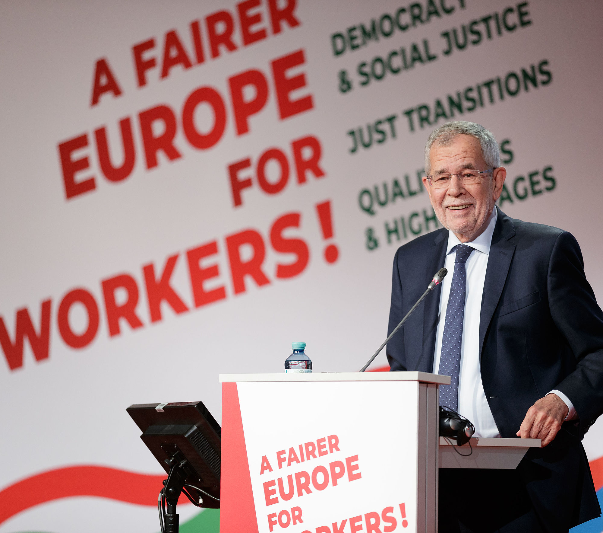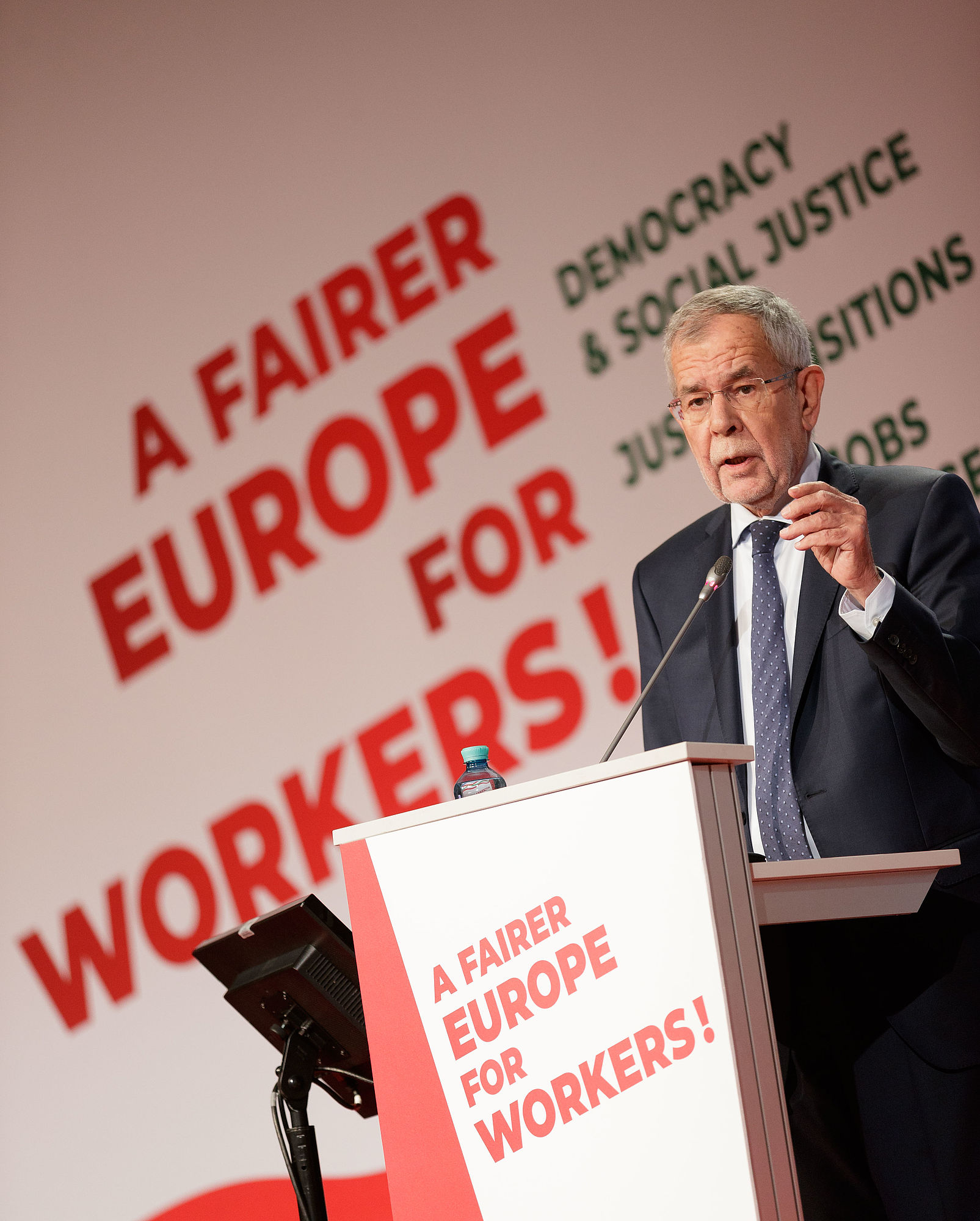 Die Welt ändere sich stündlich, alte Bindungen gingen verloren. Umso wichtiger sei die Entwicklung der sozialen Säule in der EU. Nicht nur für die Gewerkschaften sei es wesentlich, an ein vereintes Europa zu glauben. Kritik gab es von Bundespräsident Van der Bellen an "nationalistischen Strömungen". Es gebe "verschiedene Parteien, die im Ernst glauben, allein" agieren zu können. "Ich denke nur an Marine Le Pen in Frankreich, die das mehrfach gesagt hat, obwohl sie jetzt kürzer tritt, dass sie die Union zerstören will. Mit allen Folgen. Nicht einmal für Deutschland gilt das, geschweige denn für ein kleines Land wie Österreich".