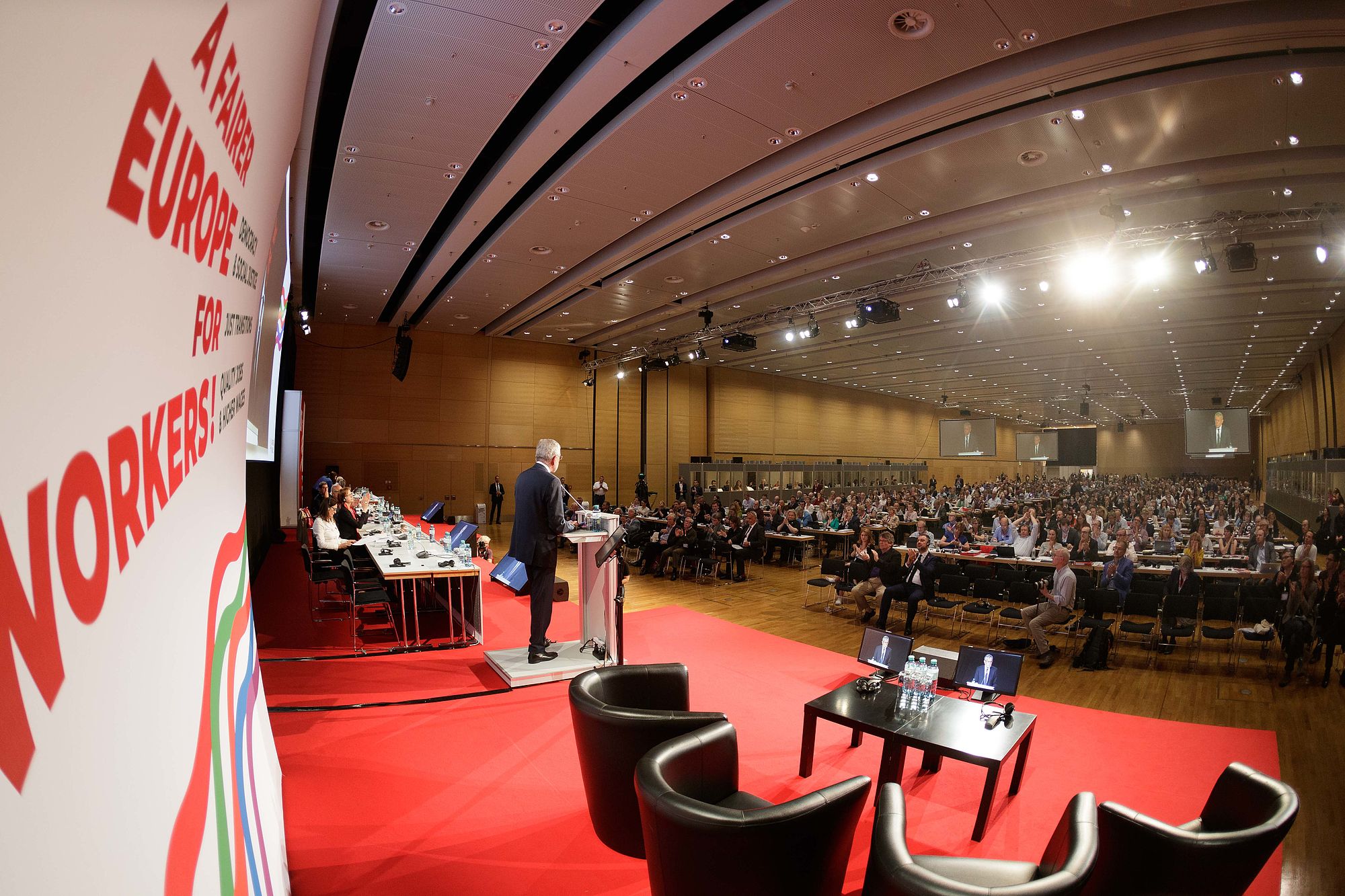 (2/2) in vielen Ländern in Frage. Die #Gewerkschaftsbewegung unterstützt die proeuropäischen Kräfte und setzt sich für ein #Europa ein, das mit einer gemeinsamen, mit einer starken Stimme spricht, einer Stimme des friedlichen Miteinanders. Ich danke Ihnen dafür! #ETUC19 (vdb)