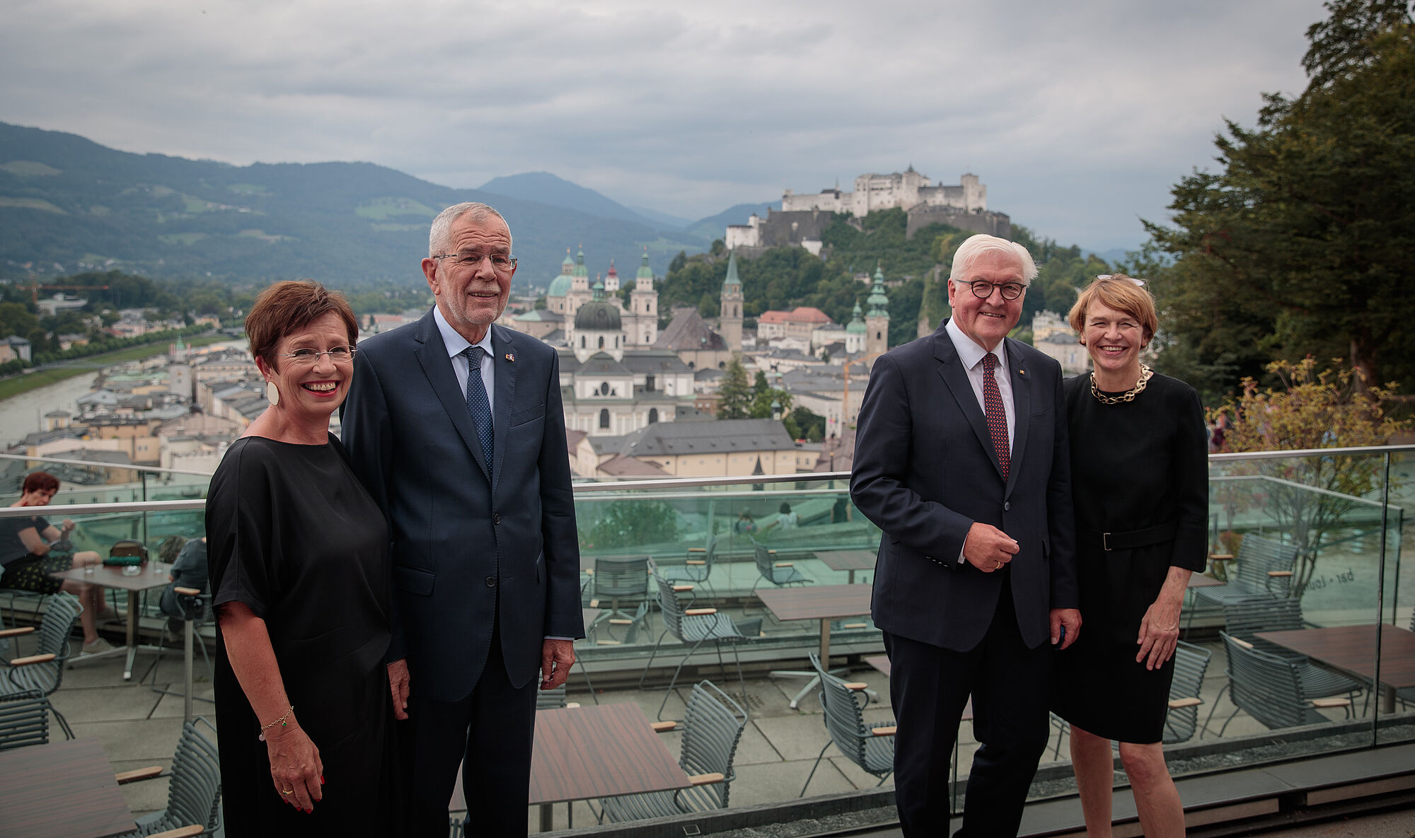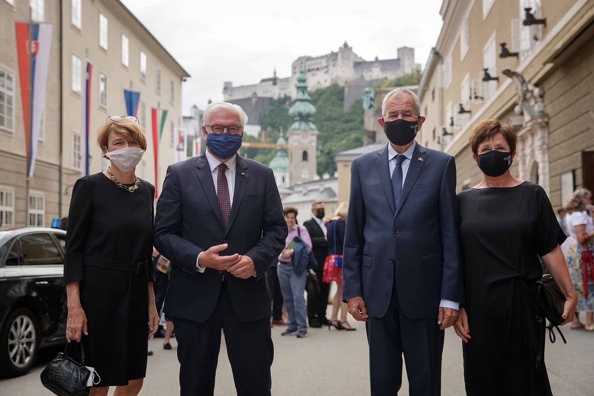 Der Bundespräsident empfängt seinen deutschen Amtkollegen Frank-Walter Steinmeier in Begleitung von Elke Büdenbender zu einem Festspiel- und Arbeitsbesuch in Salzburg
