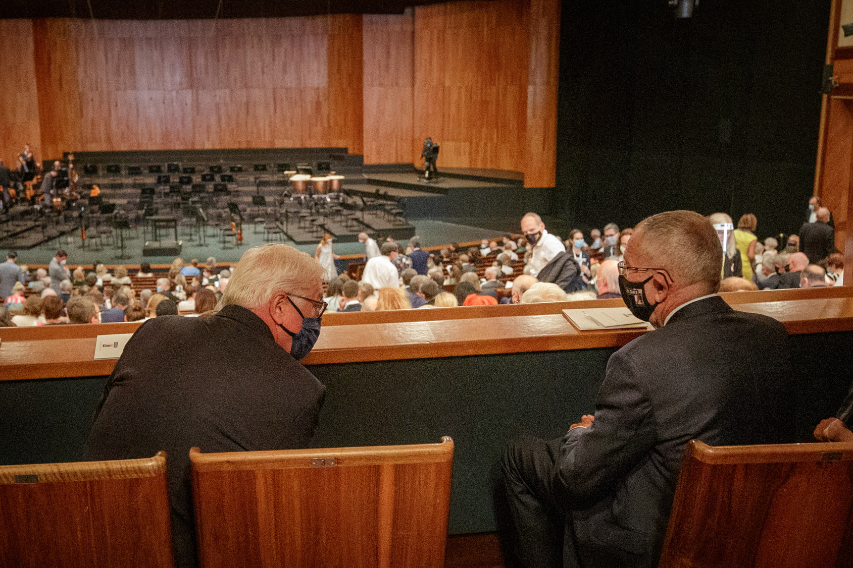 Nach dem Besuch eines Konzertes der Wiener Philharmoniker unter der Leitung von Christian Thielemann im Großen Festspielhaus mit ihren Ehefrauen gaben die beiden Präsidenten ein Statement in der Fördererlounge der Salzburger Festspiele ab. Van der Bellen zeigte sich beeindruckt von der musikalischen Darbietung und auch von Mezzosopranistin Elina Garanca. "Es fällt einem ein bisschen schwer aus der musikalischen Atmosphäre zu ihnen zu sprechen", sagte er lächelnd zu den Journalisten. Anschließend lobte er auch die organisatorische Leistung der Leitung und Mitarbeiter der Festspiele, in diesem Jahr das Festival zu veranstalten, wenn auch im beschränkten Rahmen, und die Rück- und Neuabwicklung des Kartenverkaufs bewerkstelligt zu haben.