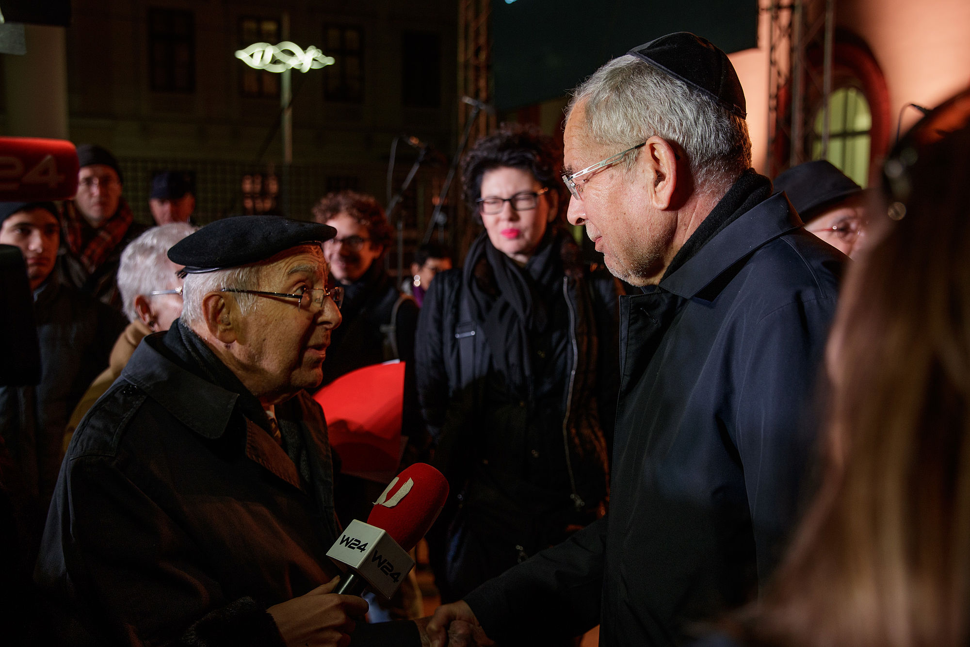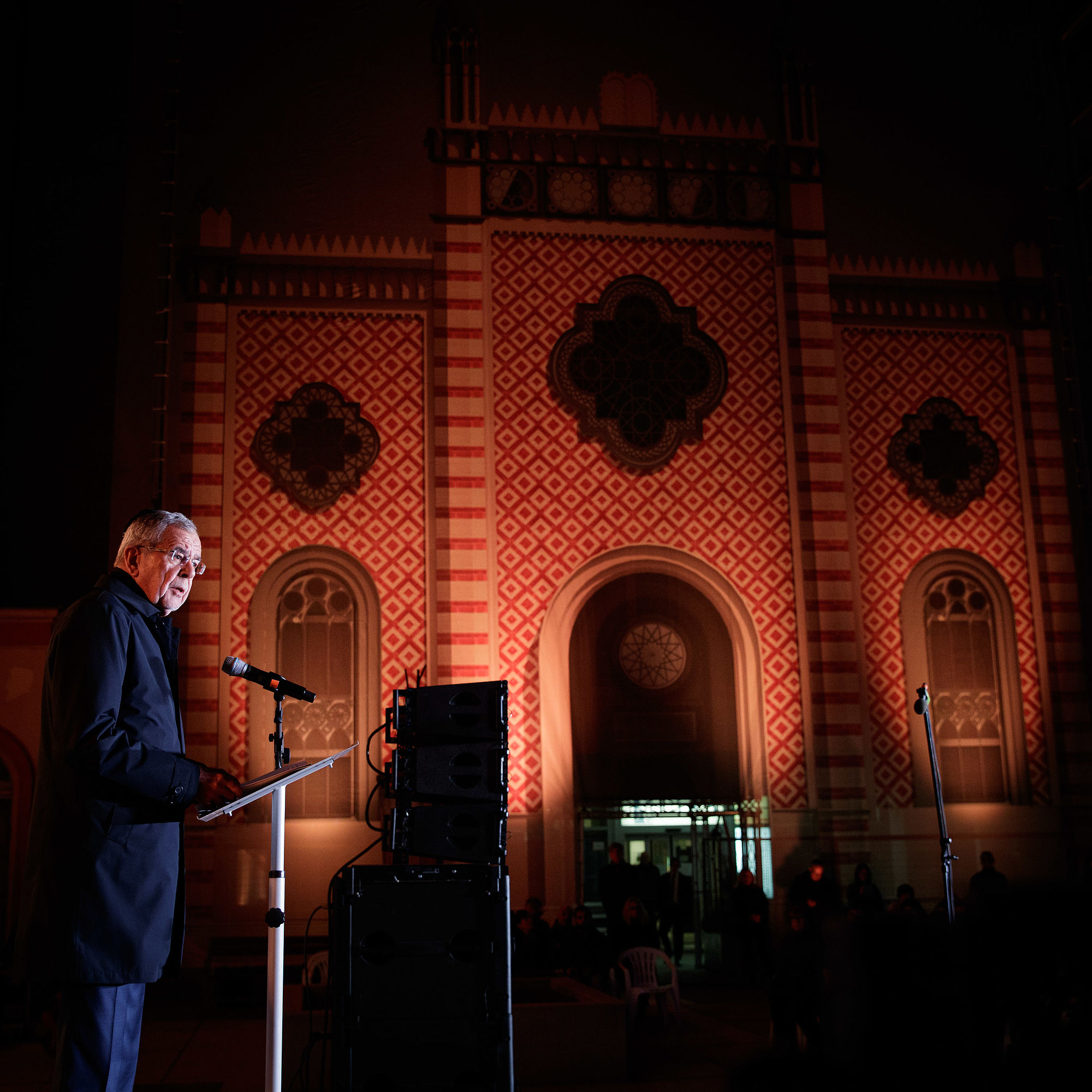 Alexander Van der Bellen erinnerte an die Ereignisse vor 80 Jahren, an die Zerstörungen von Synagogen und Bethäuser, Wohnungen und Geschäfte. Noch mehr gehe es aber darum, jener Menschen zu gedenken, "die gedemütigt, gequält, vertrieben oder ermordet wurden". Besonders würdigte der Bundespräsident die bei der Gedenkveranstaltung anwesenden Zeitzeugen, denen er dafür dankte, dass sie ihre persönlichen Erinnerungen an die Verbrechen der Nationalsozialisten teilen. Dies ermögliche es, Eindrücke davon zu vermitteln, was es bedeute, einer menschenverachtenden Ideologie, einer hasserfüllten Masse ausgesetzt zu sein.