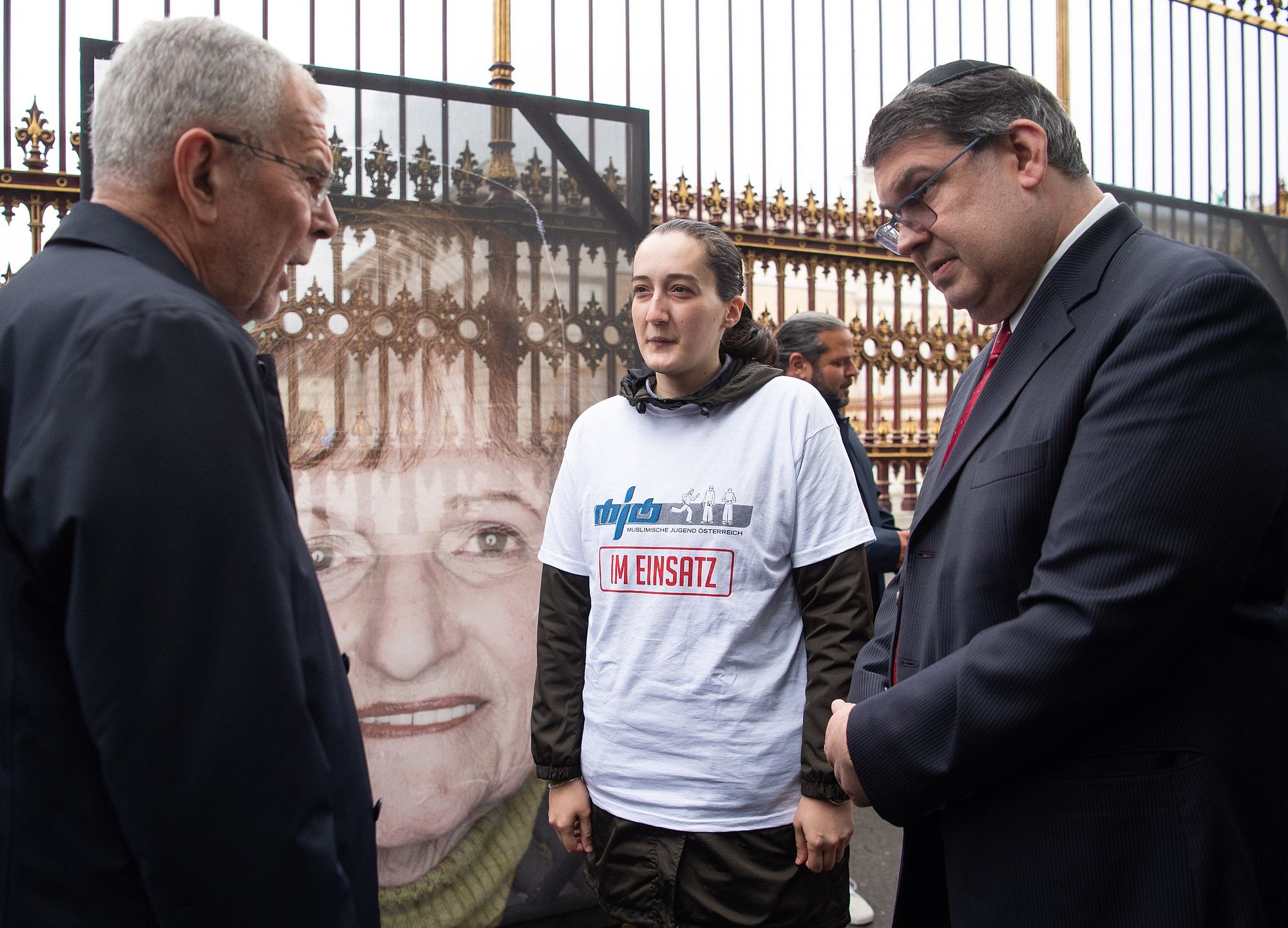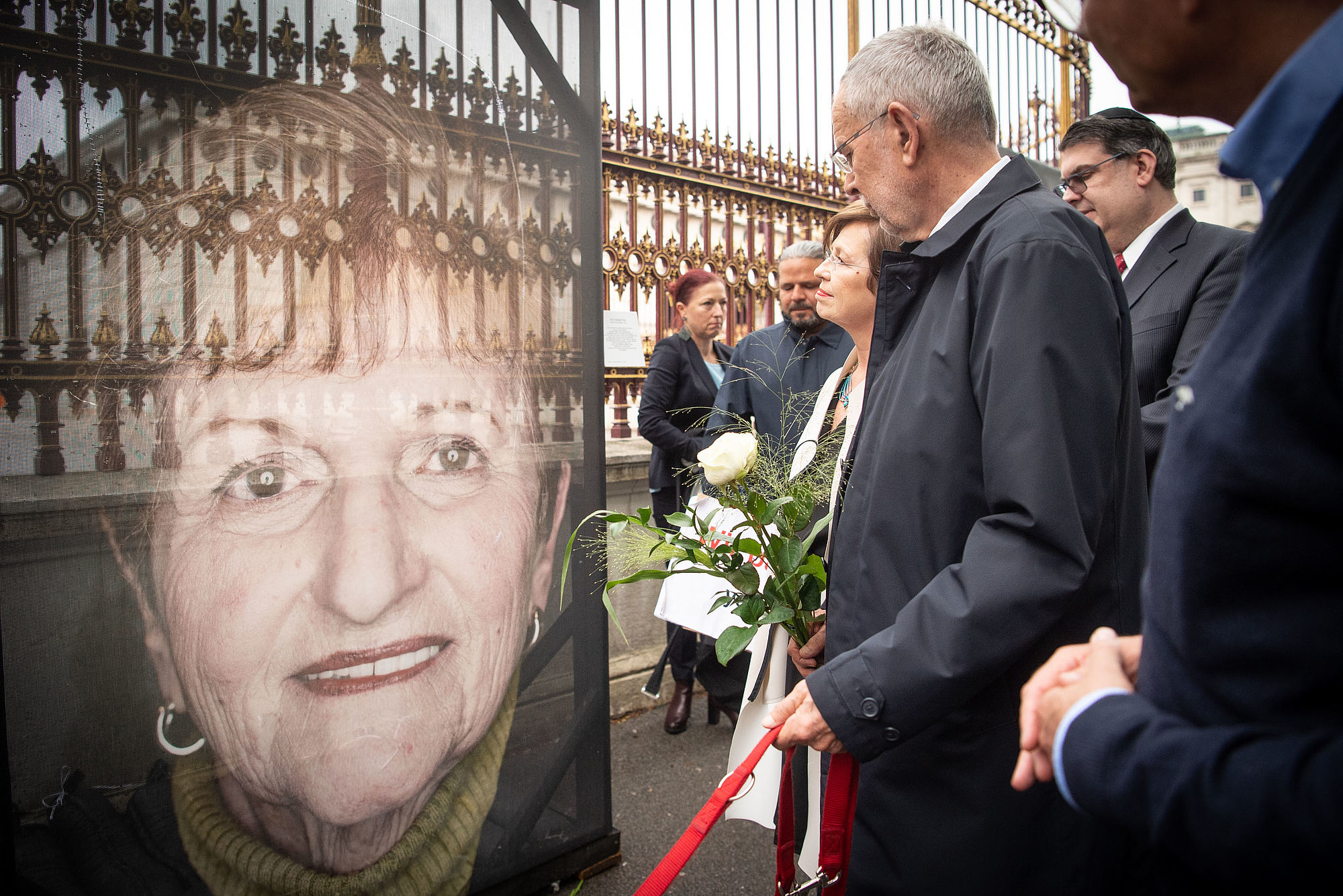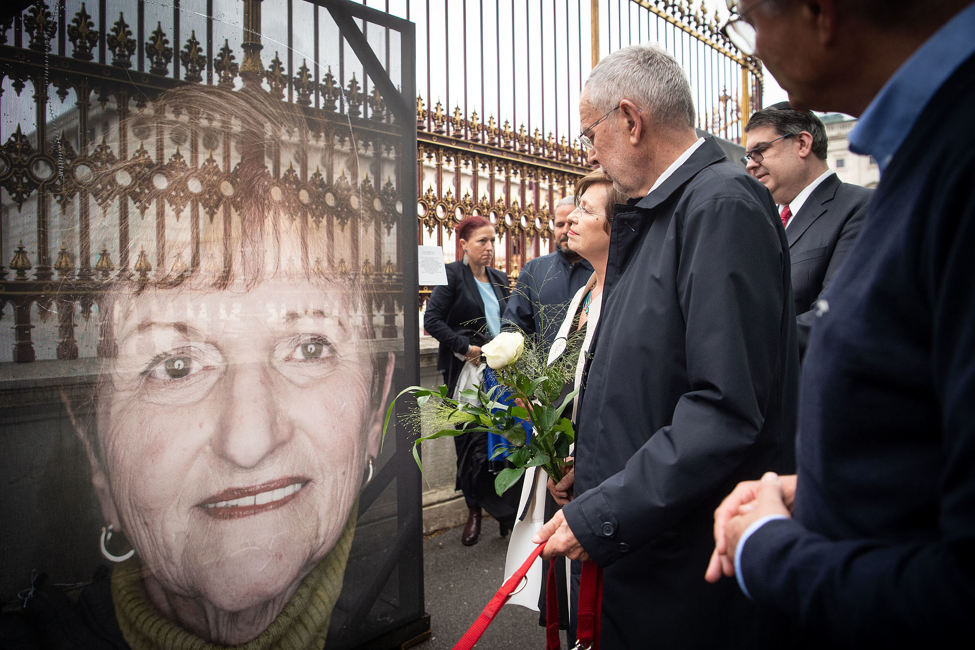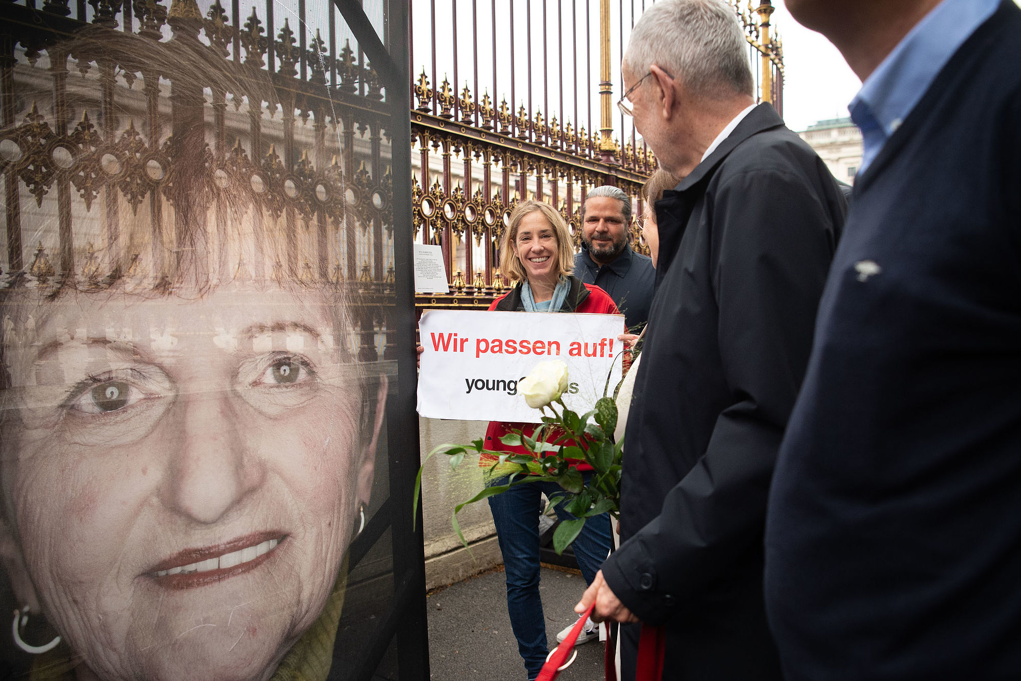 Bundespräsident Alexander Van der Bellen hat am Dienstag die Mahnwache für die zerschnittenen Porträts der Opfer der NS-Gräuel auf der Ringstraße besucht.